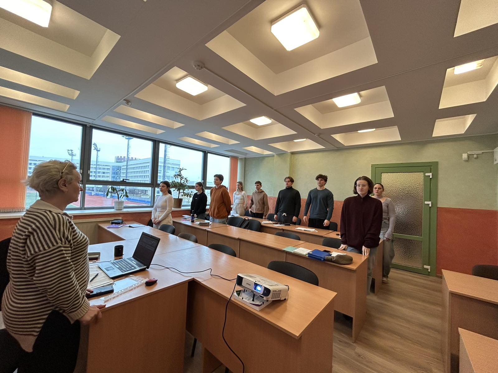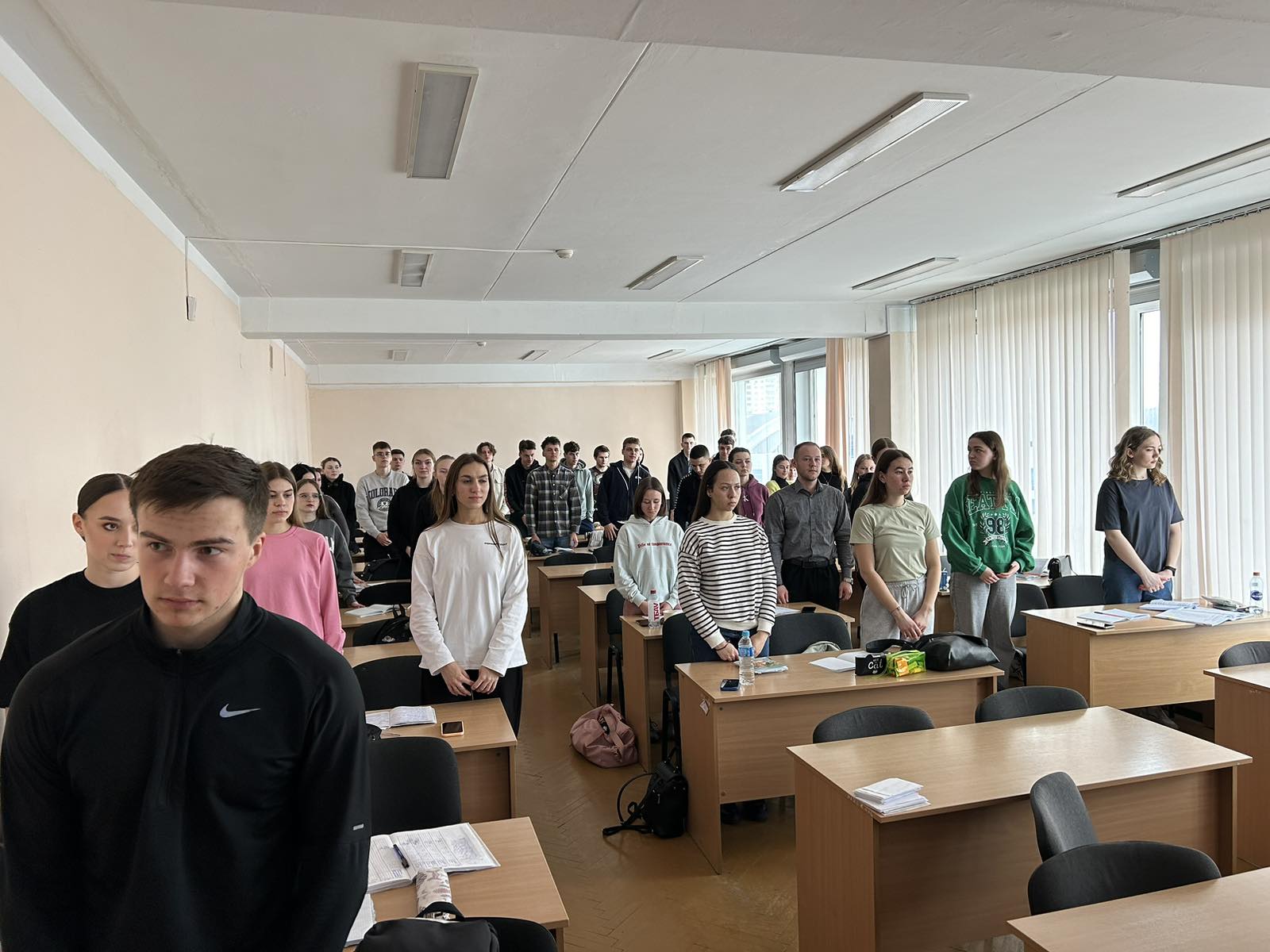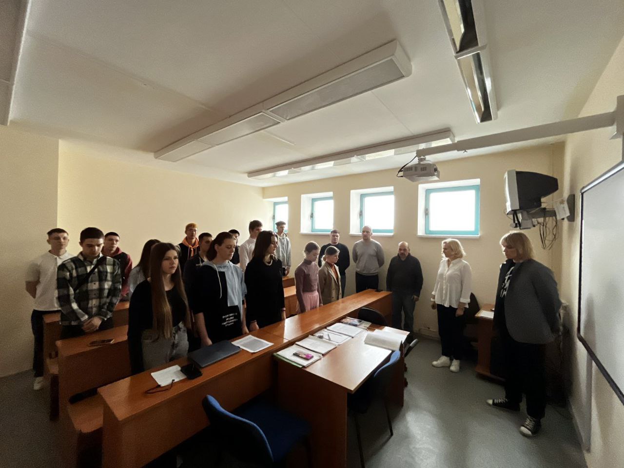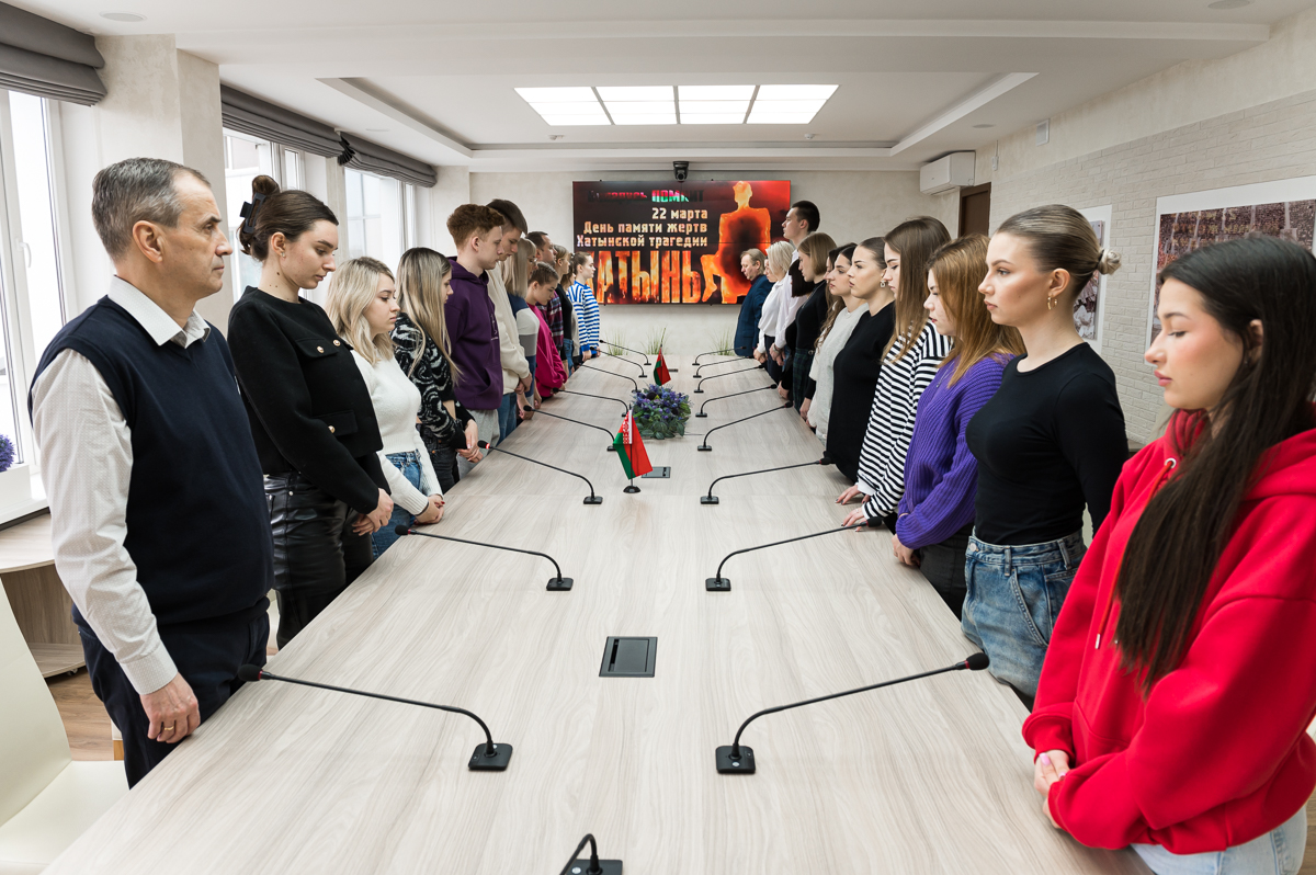 В университете ровно в 12.00 прозвучал метроном. Студенты, руководство, профессорско-преподавательский состав и сотрудники университета почтили минутой молчания память жертв трагедии в Хатыни.