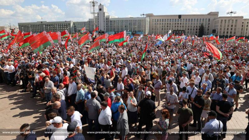 На площади Независимости в Минске 16 августа 2020 года прошел многотысячный митинг в поддержку мира и безопасности.