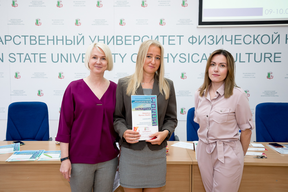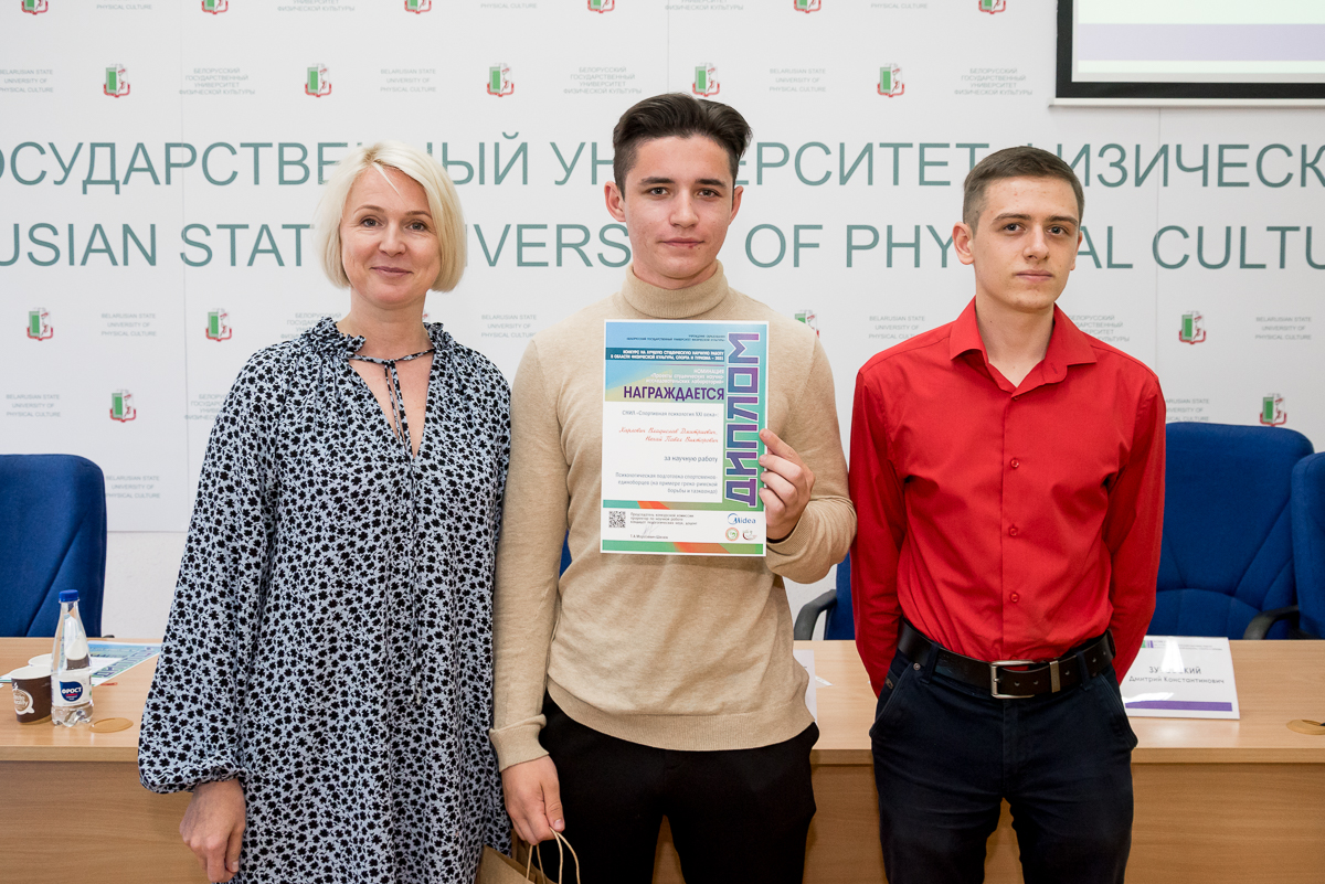 1-е место – Смоляр Анна Сергеевна, научная работа «Развитие скоростно-силовых способностей в прыжках на акробатической дорожке с учётом индивидуально-психологических особенностей личности», СПФ МВС, научный руководитель – Мацюсь Наталья Юрьевна;