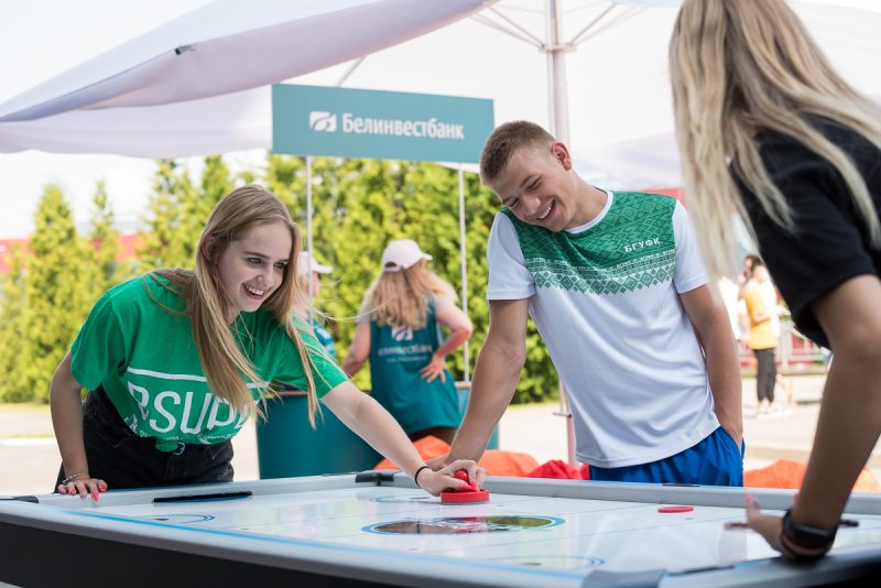 Под открытым небом для молодёжи были установлены интерактивные зоны и зоны активности от ОАО «Белинвестбанк», районной организации ОО БРСМ и информагентства «Мінская праўда». Стильные фотобудки, фотозоны, аэрохоккей, настольный футбол, игры – «Дженга» и «Твистер».
