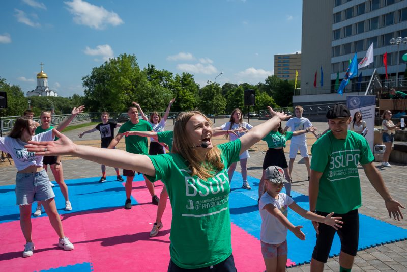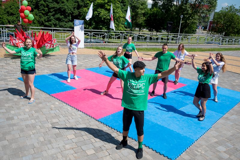 Завершился праздник танцевальным флеш-мобом «Всегда в движении…» от студентов нашего университета и запуском воздушных шаров в цвет национальных символов страны.