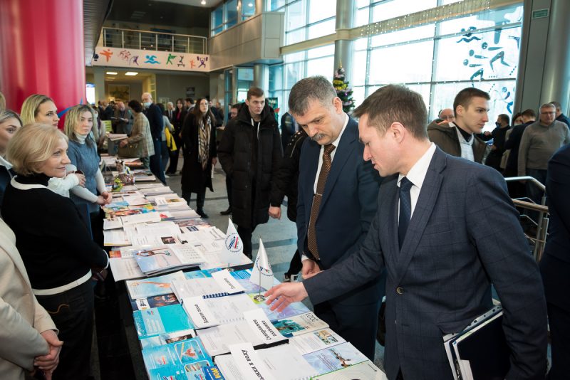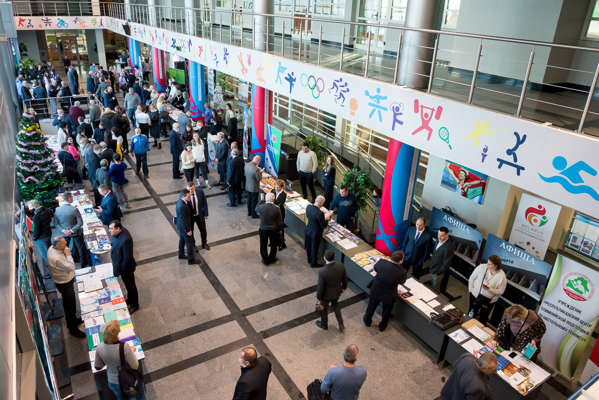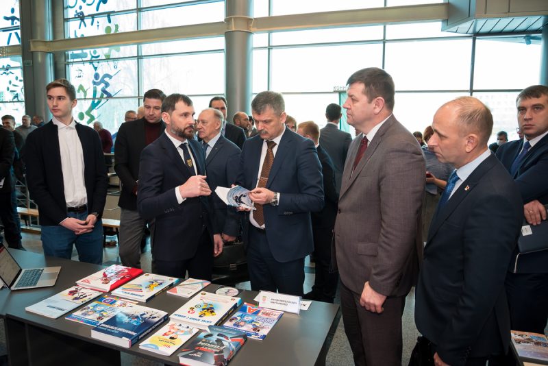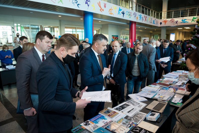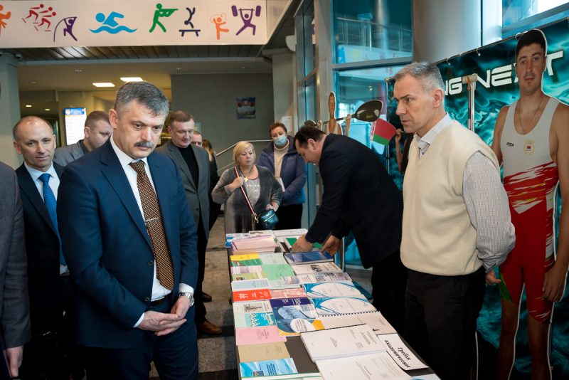 В рамках мероприятия в холле легкоатлетического манежа университета прошла презентация научных разработок, на которой подчиненные организации министерства спорта и туризма Республики Беларусь и федерации по видам спорта продемонстрировали планы, учебные программы развития, учебные пособия, справочные материалы и другую научно-методическую литературу.