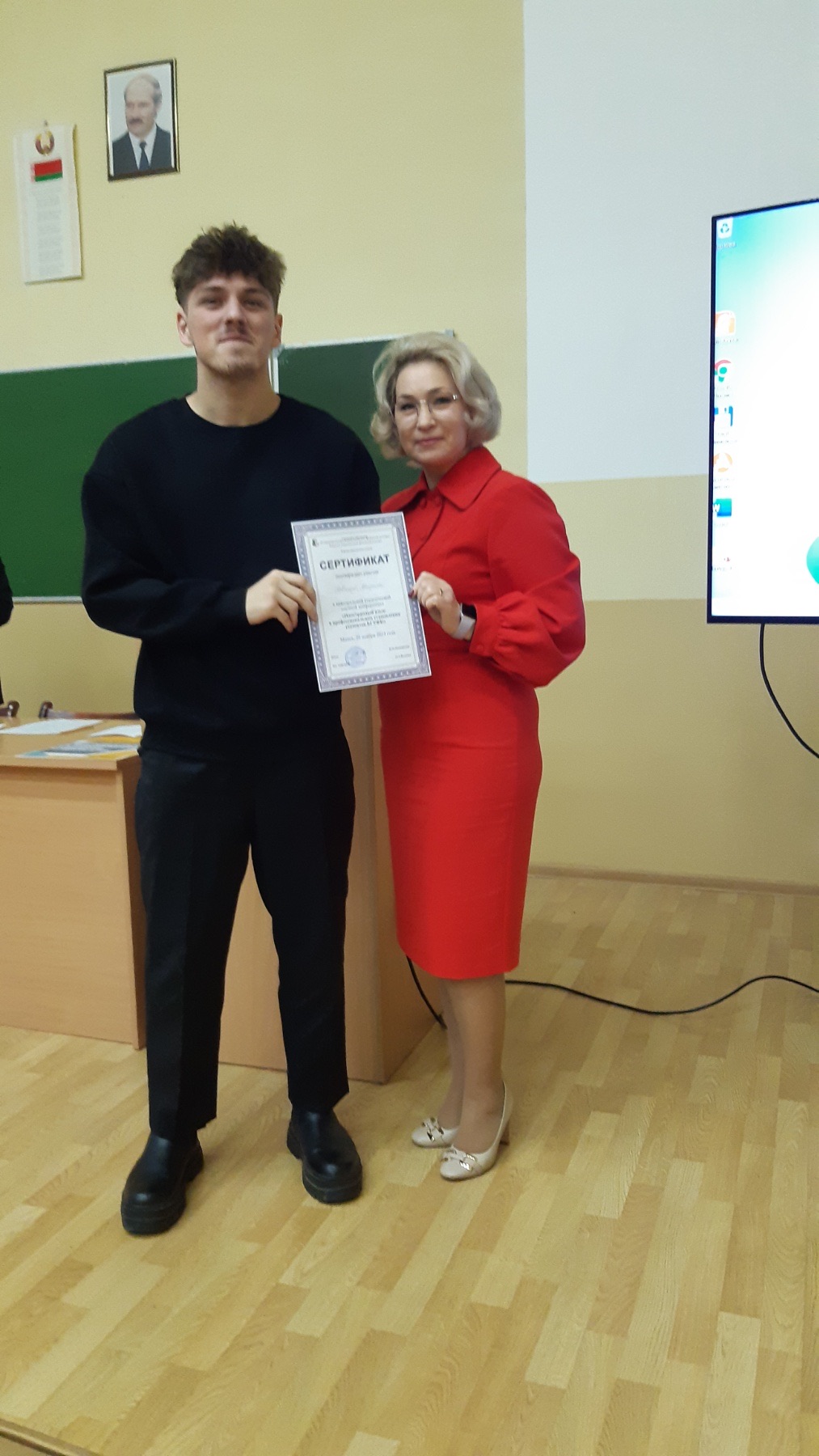 Левченко Максим (2201 группа) с докладом «Субъективный подход при вынесении оценки в соревнованиях по правилам Всемирной федерации каратэ (на немецком языке)», научный руководитель: Соловей Тереса Антоновна, старший преподаватель кафедры иностранных языков.