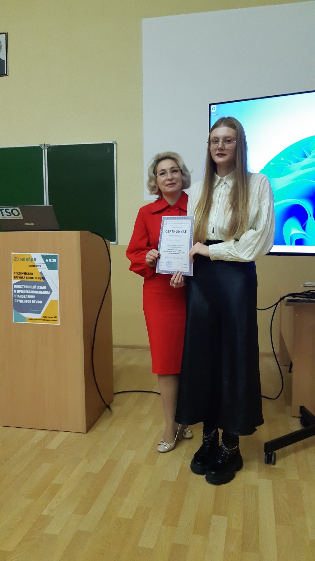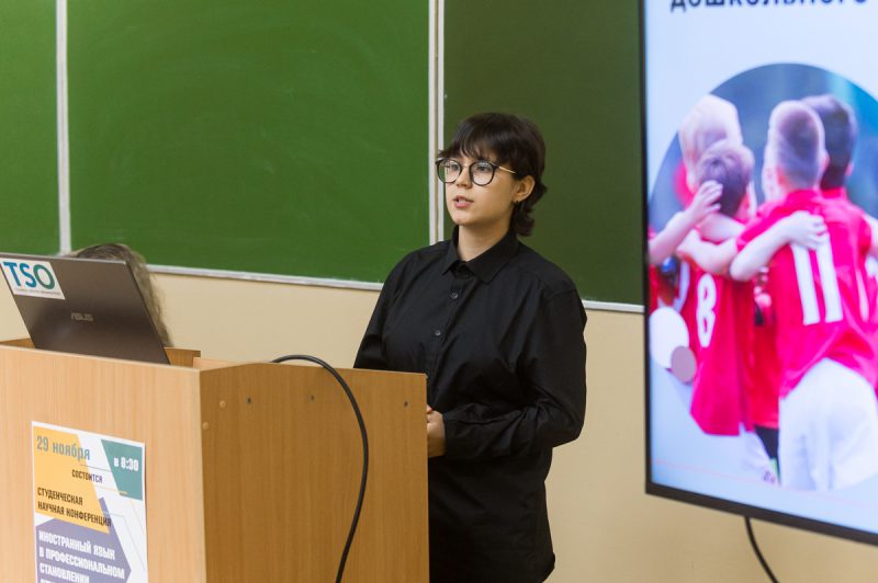Из 19 научных докладов сотрудниками кафедры были отобраны семь лучших устных выступлений и презентаций студентов на английском, немецком и французском языках. Раджабова Ирина (0205 группа) с докладом «Влияние занятий футболом на физическое и эмоциональное состояние детей дошкольного возраста», научный руководитель: Курбыко Татьяна Авенировна, старший преподаватель кафедры иностранных языков.