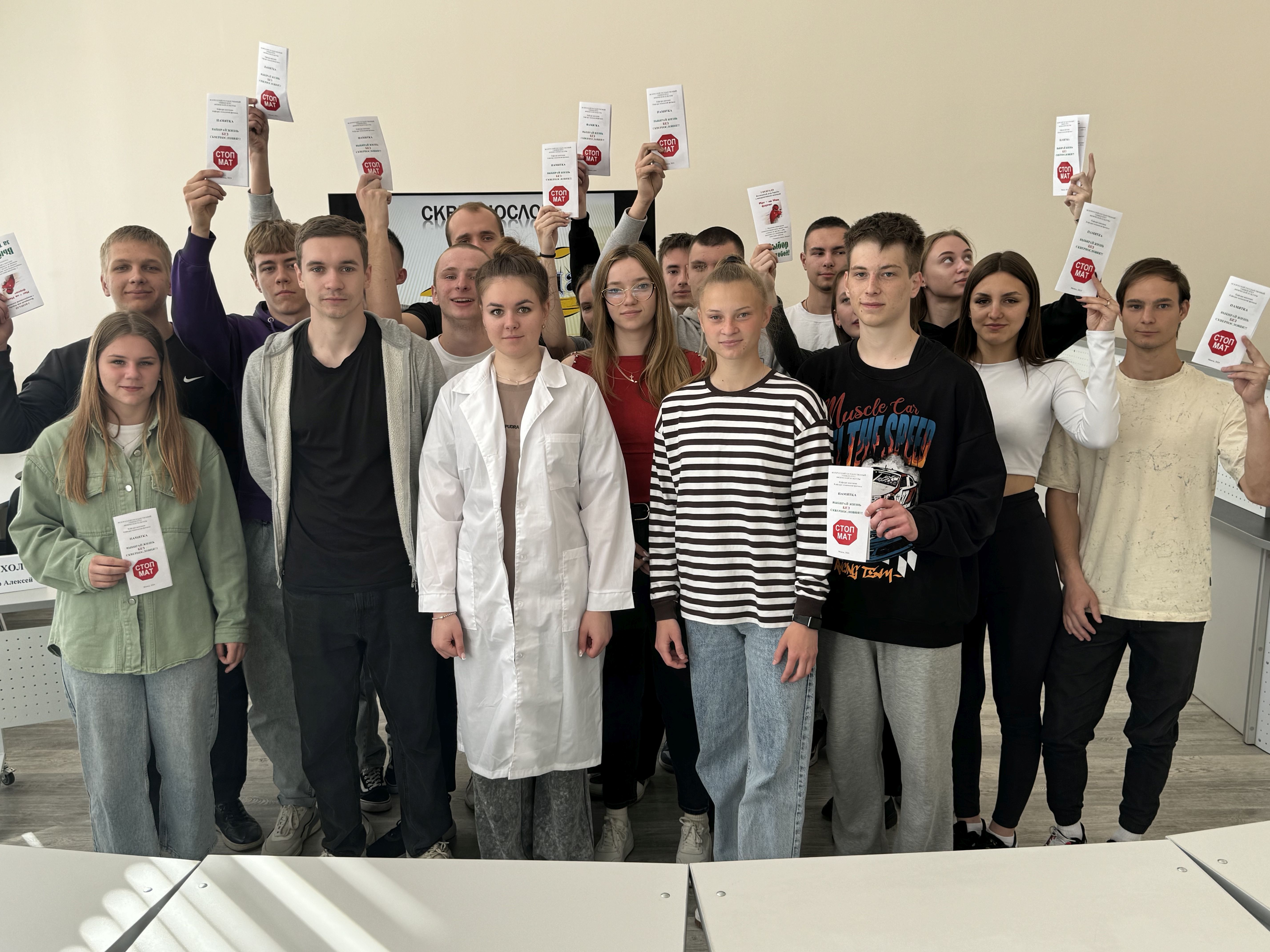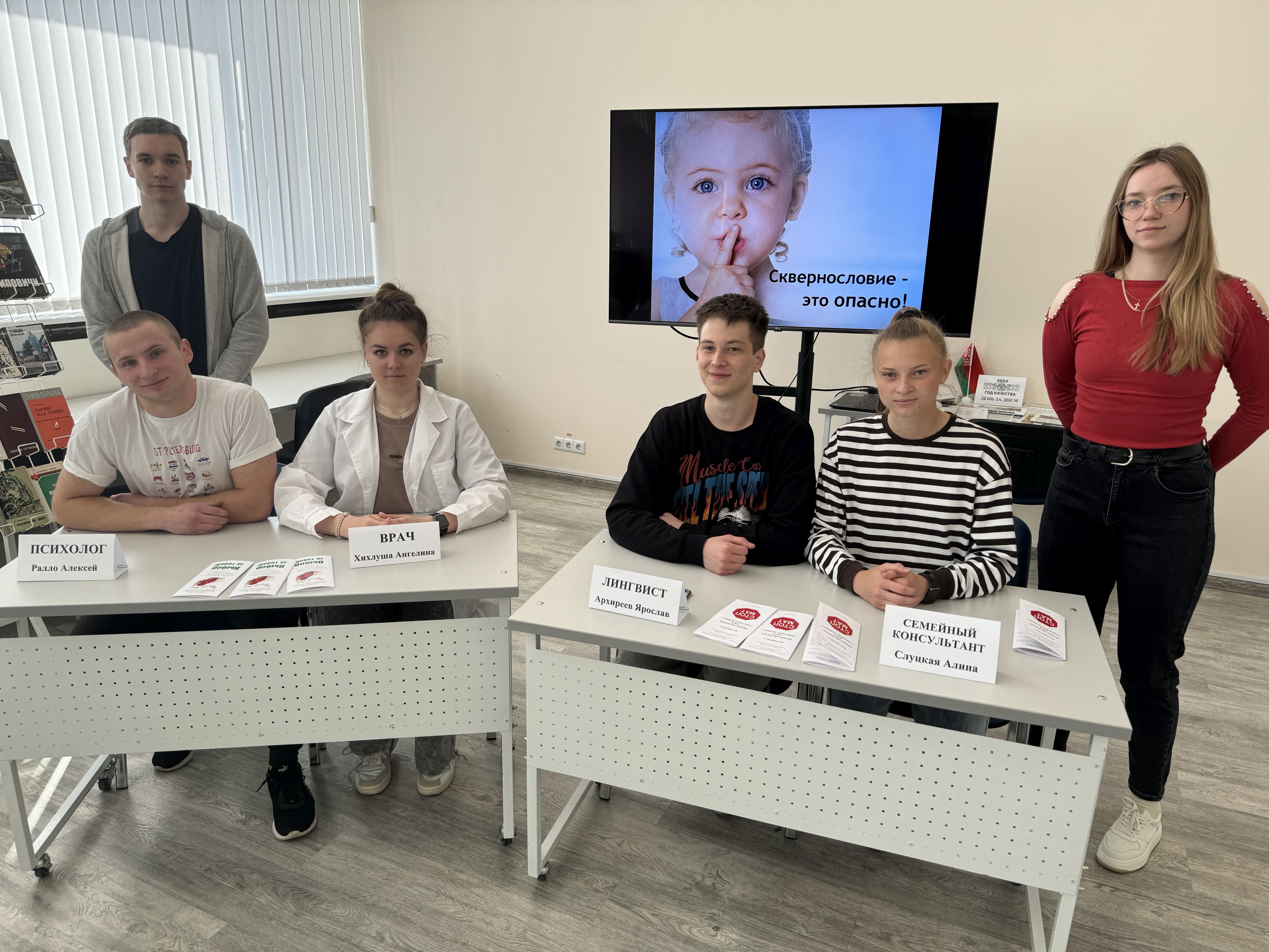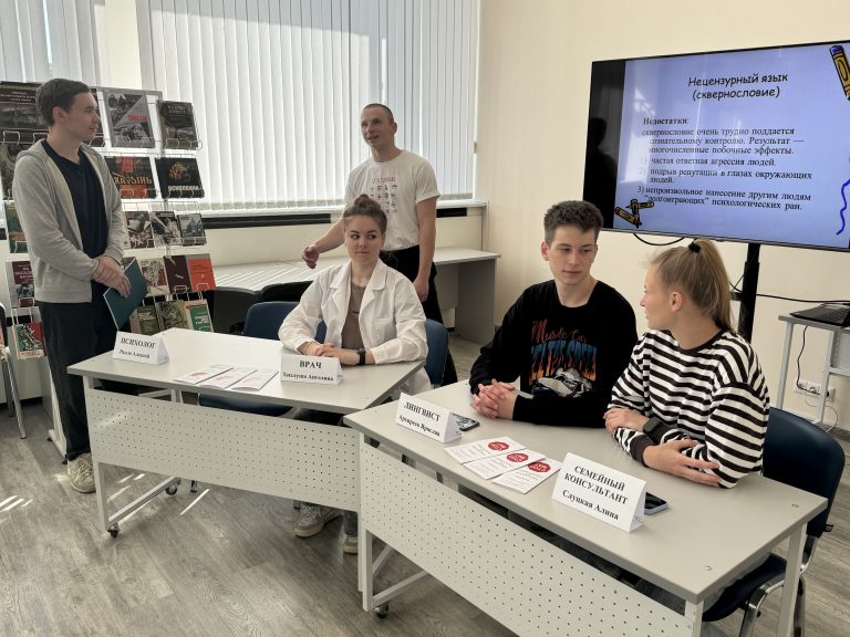 На факультете оздоровительной физической культуры 16 мая 2024 года, в рамках конкурса «Молодежь Беларуси за жизнь, нравственность и семейные ценности», проведено завершающее воспитательное мероприятие – дискуссия в стиле ток-шоу «ДА/НЕТ сквернословию». Участники проектной команды «Чистота речи – твоя победа!» Валович Валерия (030 группа), Плотницкий Александр (021 группа) выступили на мероприятии ведущими, Слуцкая Алина, Ралло Алексей, Хихлуша Ангелина, Архиреев Ярослав (020 группа) — экспертами. Студенты целевой группы проекта (010 группа), будучи активными участниками ток-шоу, аргументированно выражали собственную позицию по каждому вопросу темы дискуссии, делились мнением, насколько изменилось их отношение к использованию нецензурной лексики в повседневной жизни.