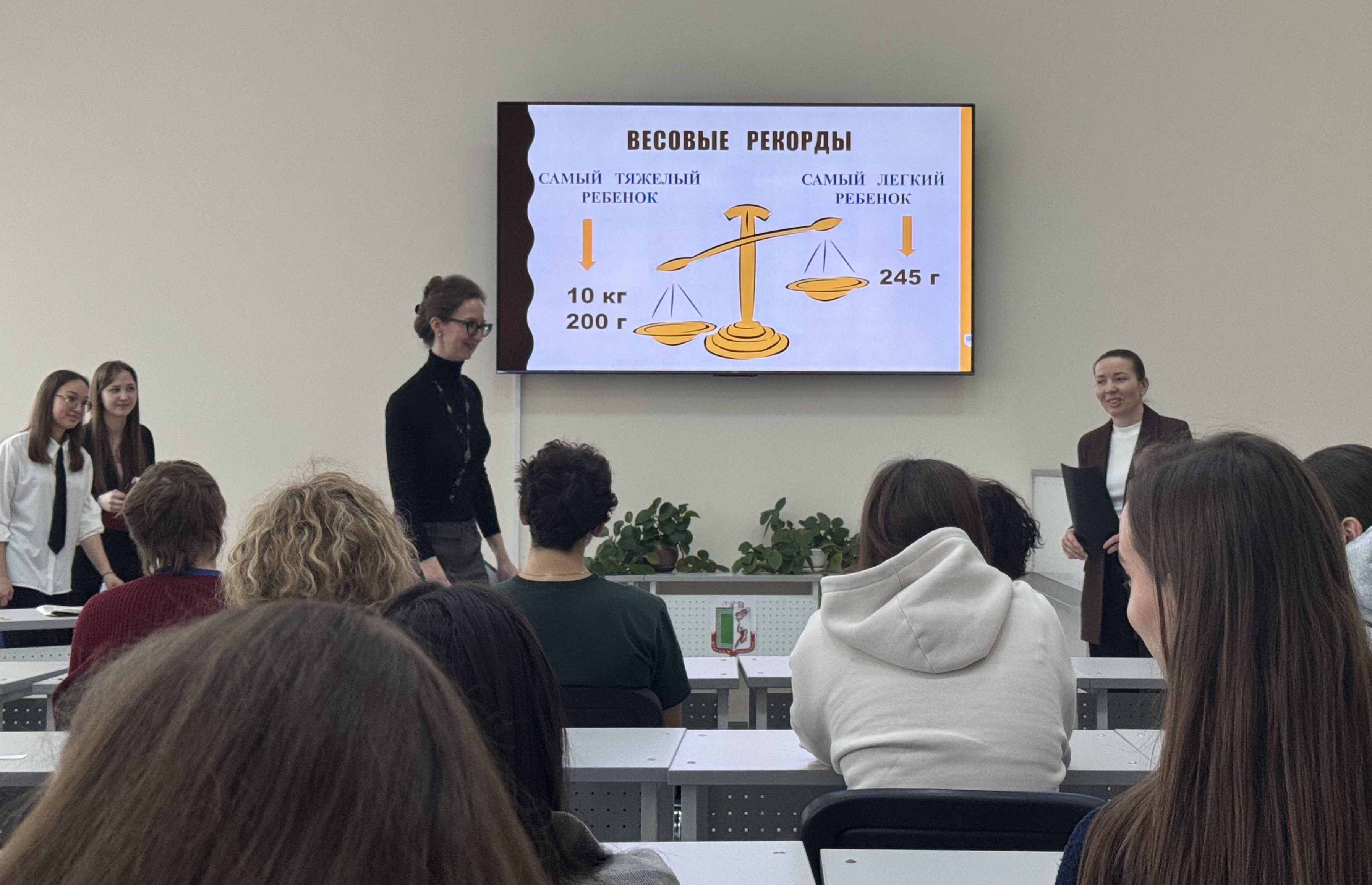 Чтобы сделать встречу познавательной, организаторы подготовили интерактивную викторину «Угадай рекорд». Студенты смогли проверить свои знания о самых удивительных фактах, связанных с многодетностью. Викторина включала вопросы о белорусских и мировых рекордах.