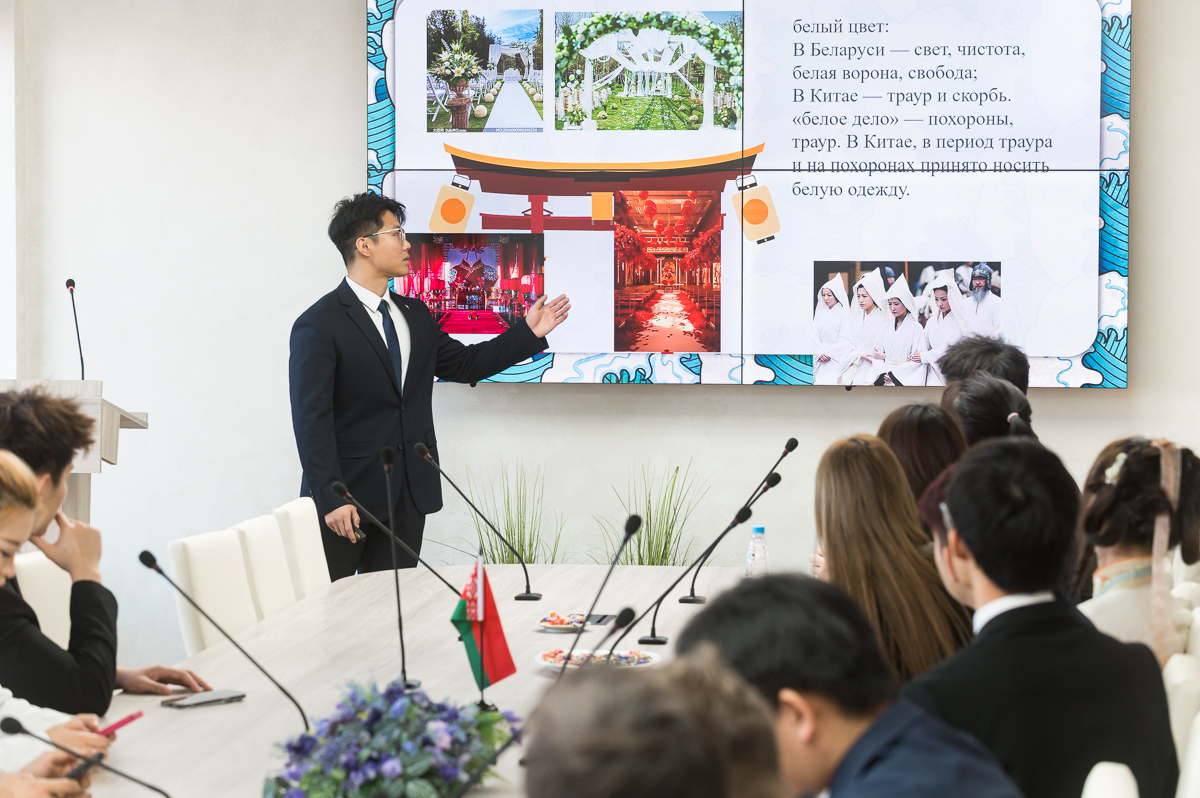 Тему продолжил магистрант Ван Цзы и поделился своими наблюдениями некоторых особенностей этикета в китайской и белорусской культуре.