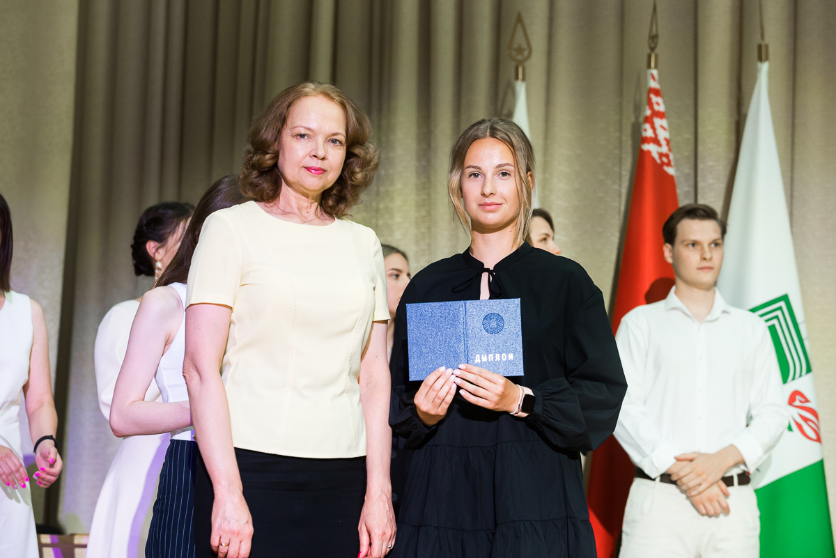 Со словами поздравления к выпускникам обратилась старший преподаватель кафедры белорусского и русского языков Коломийцева Вероника Александровна, подарив прекрасную песню.