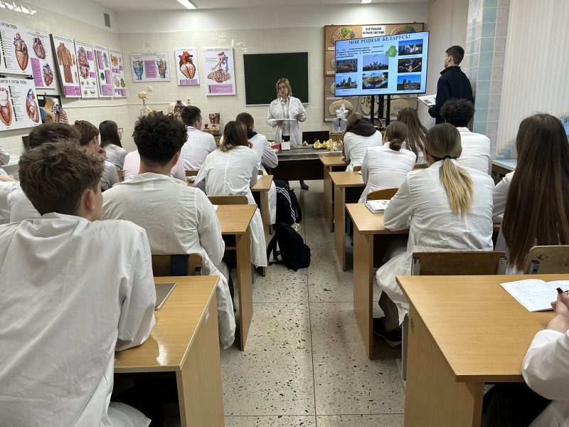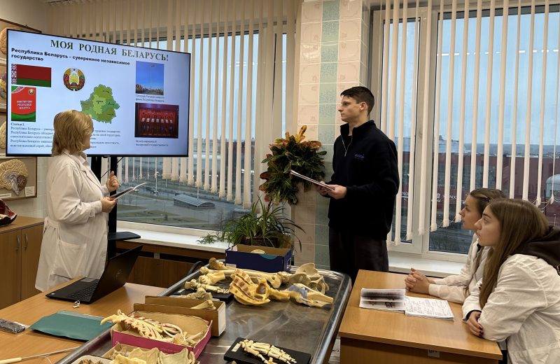 В ходе мероприятия была подчеркнута роль белорусского народа как народа-героя, продемонстрированы примеры мужества и стойкости, а также осмыслена трагедия войны как фундамент исторической памяти и национального единства. Студентам была показана богатейшая палитра культурного наследия Беларуси, включающая архитектурные памятники, духовные центры и народные традиции, составляющие неотъемлемую часть национального кода. Особое внимание было уделено вкладу современных белорусов – ученых, рабочих, аграриев, деятелей искусства – в развитие и укрепление суверенного государства. На конкретных примерах была проиллюстрирована роль спорта как важного элемента государственной политики, объединяющего нацию и воспитывающего силу духа. Были приведены впечатляющие примеры инновационных разработок и производственных достижений белорусских предприятий, получивших мировое признание. Оксана Ивановна ознакомила аудиторию с новыми и возрожденными традициями, которые укрепляют государственность и формируют уникальный облик современной Беларуси.