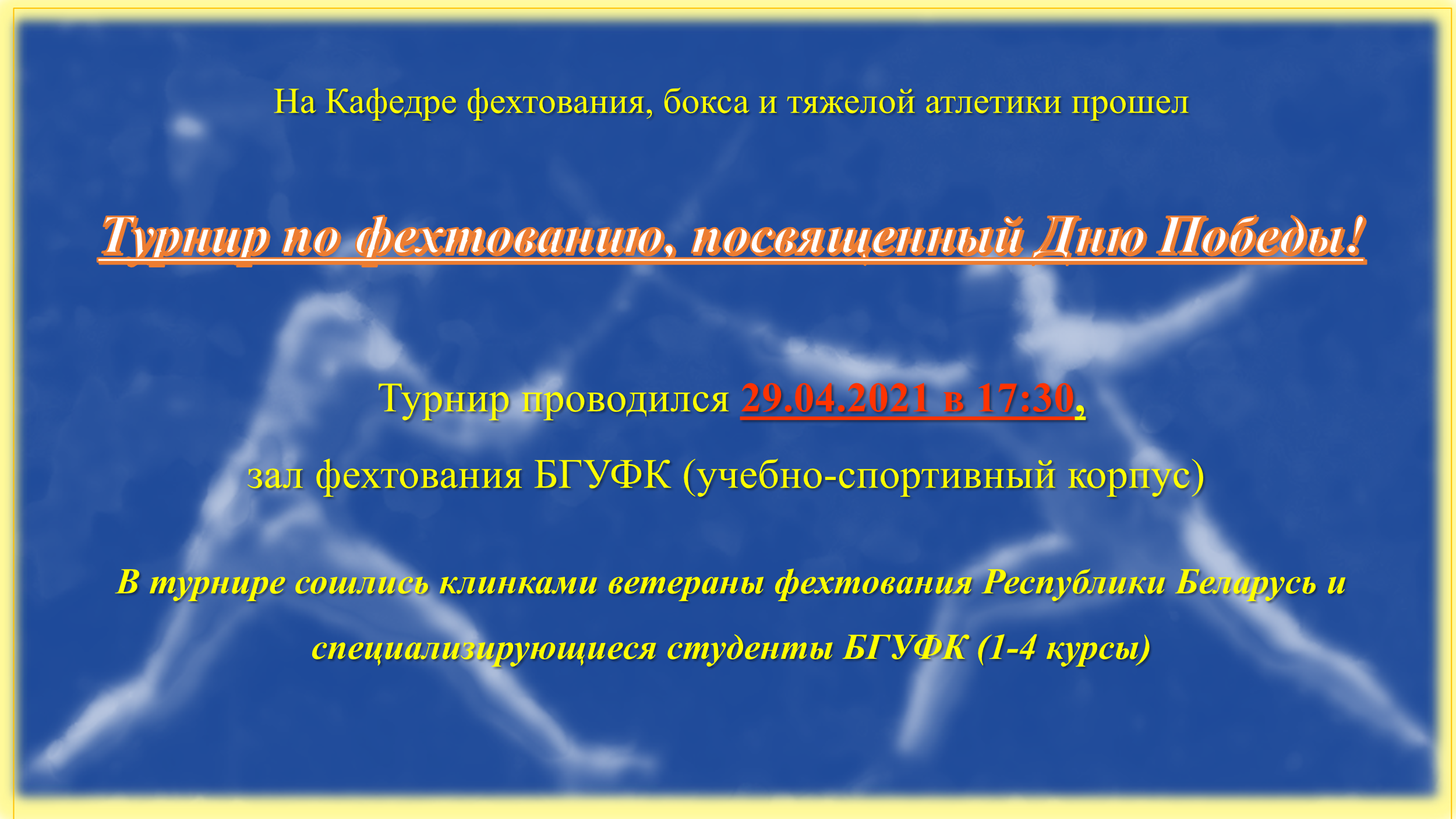На кафедре фехтования, бокса и тяжёлой атлетики прошёл турнир по фехтованию, посвящённый Дню Победы