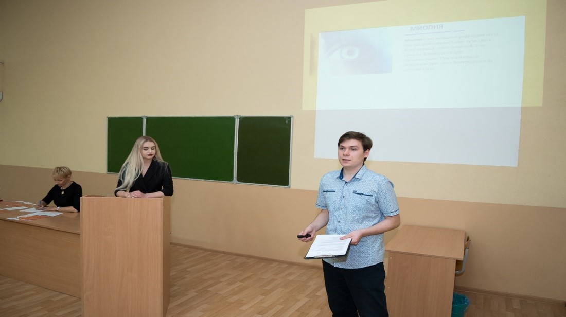 Высокий уровень исследования показали студенты под руководством старшего преподавателя кафедры физиологии и биохимии Кучинской О.В. Яцкова Татьяна и Степаньков Никита (124 гр.), которые выступили на тему: «Использование современных методов коррекции зрения методом ортокератологии при нарушениях рефракции».