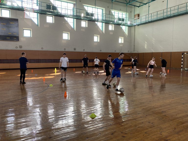 29 апреля в рамках II Научно-практического форума «Время спортивных игр» на кафедре футбола и хоккея прошел практический интенсив «Урок футбола в школе». Преподаватели кафедры Харитонов Евгений Сергеевич, Галуза Илья Константинович, Панасевич Максим Сергеевич провели практическое занятие с группой 011 в рамках учебной дисциплины СиПИиМП (футбол). Тема практического интенсива полностью соответствовала учебной программе дисциплины «Техника остановок мяча подошвой. Техника ведения мяча различными способами. Методика обучения и совершенствования остановки мяча подошвой и ведения мяча».