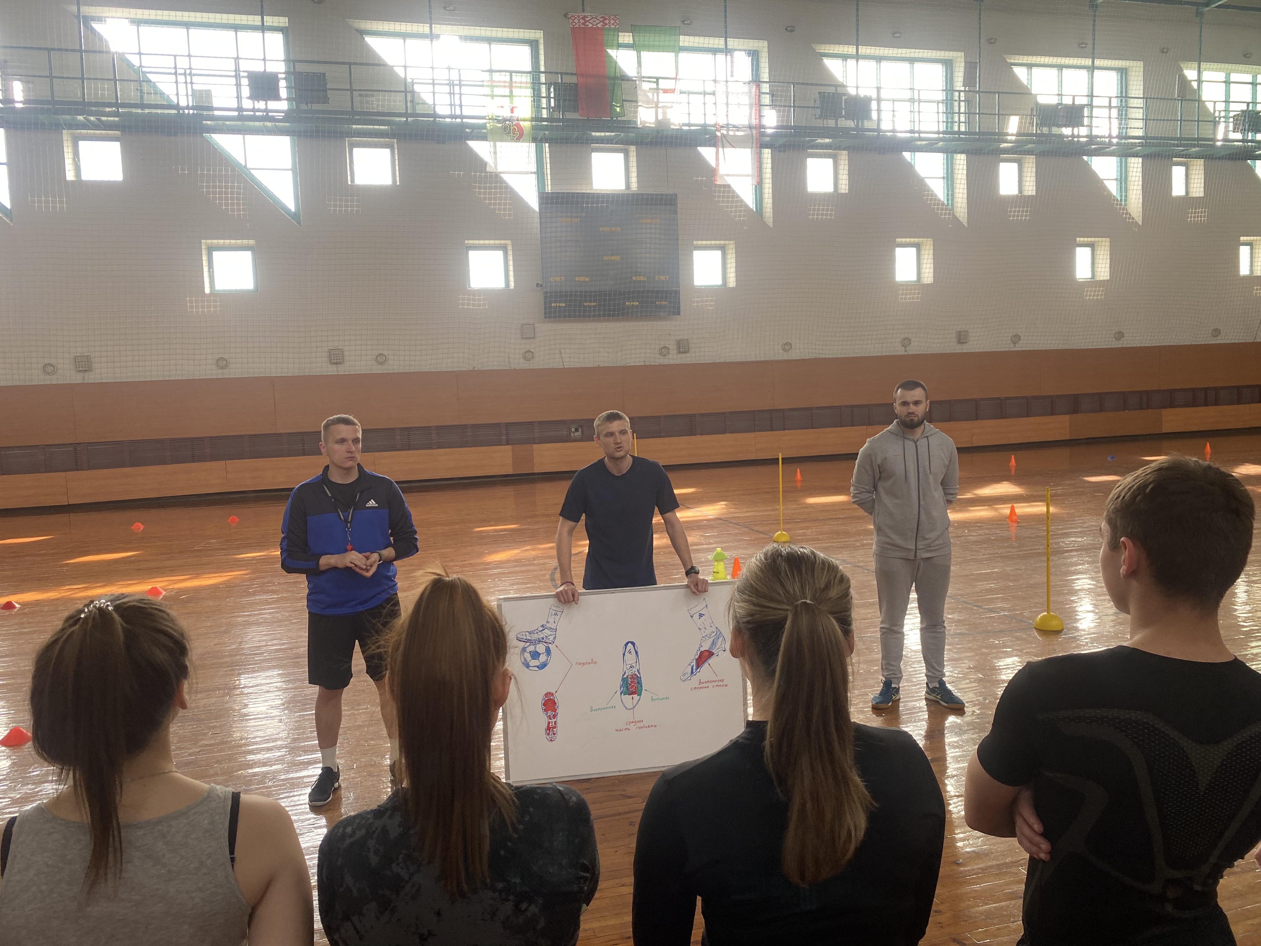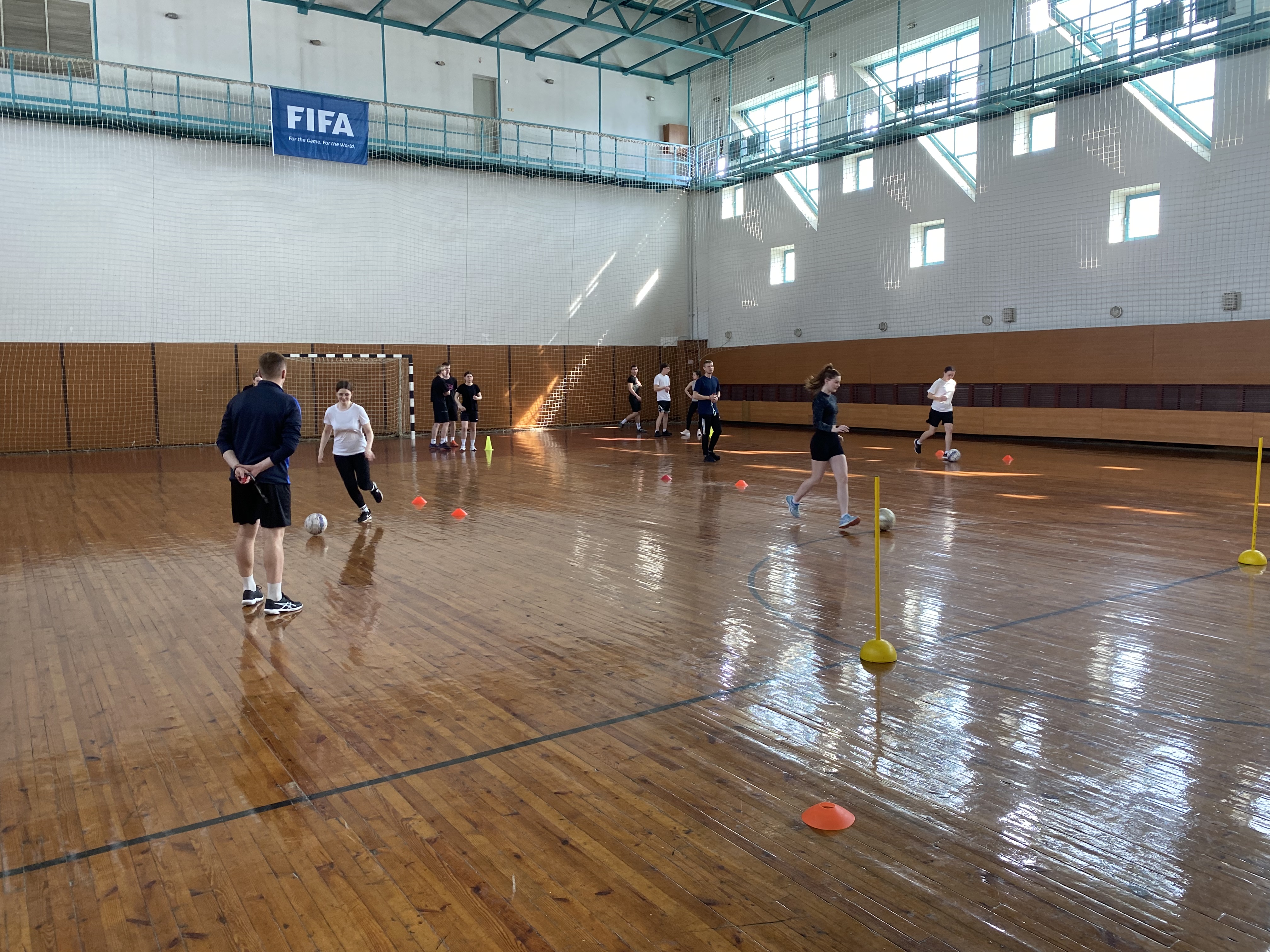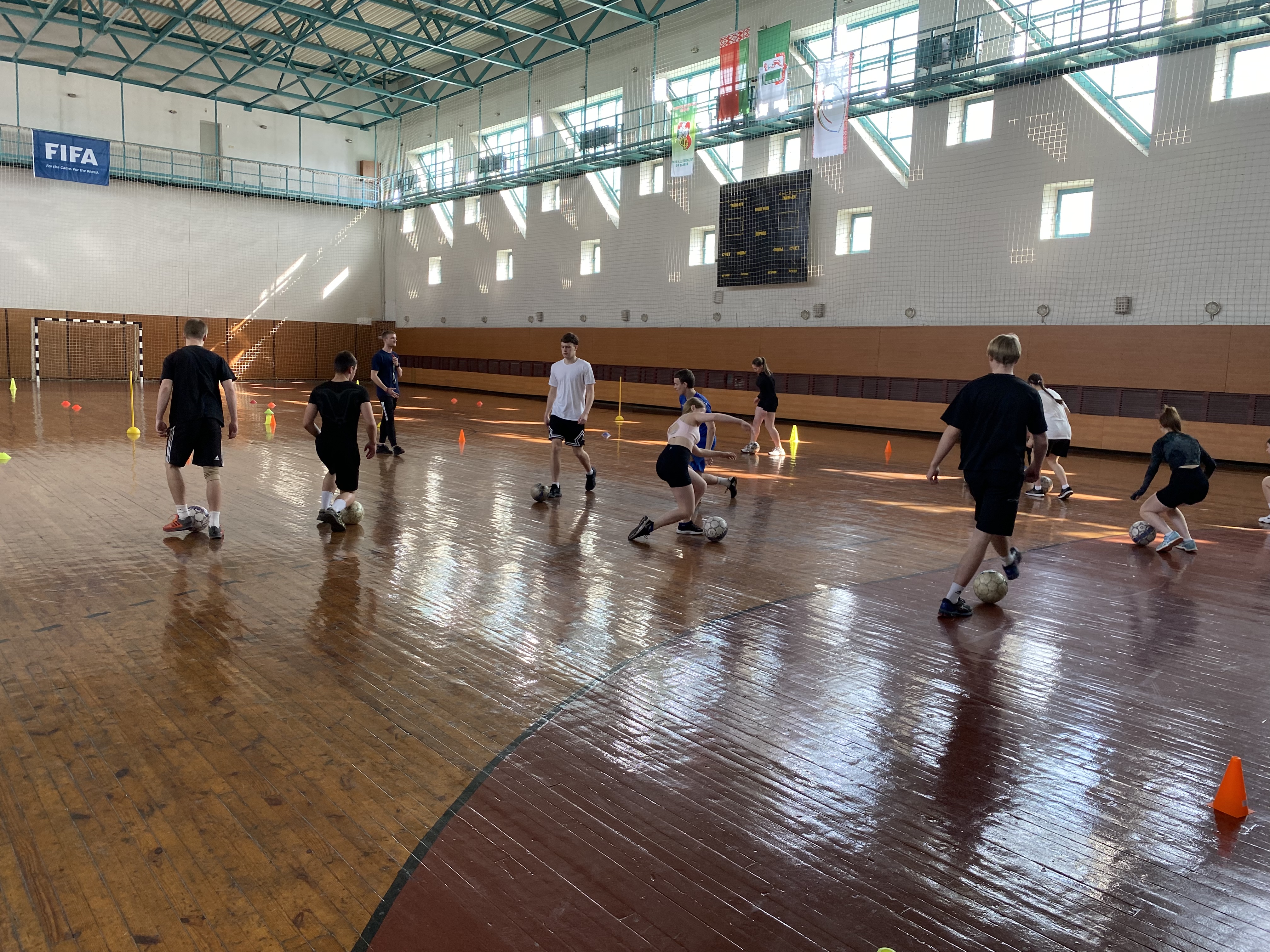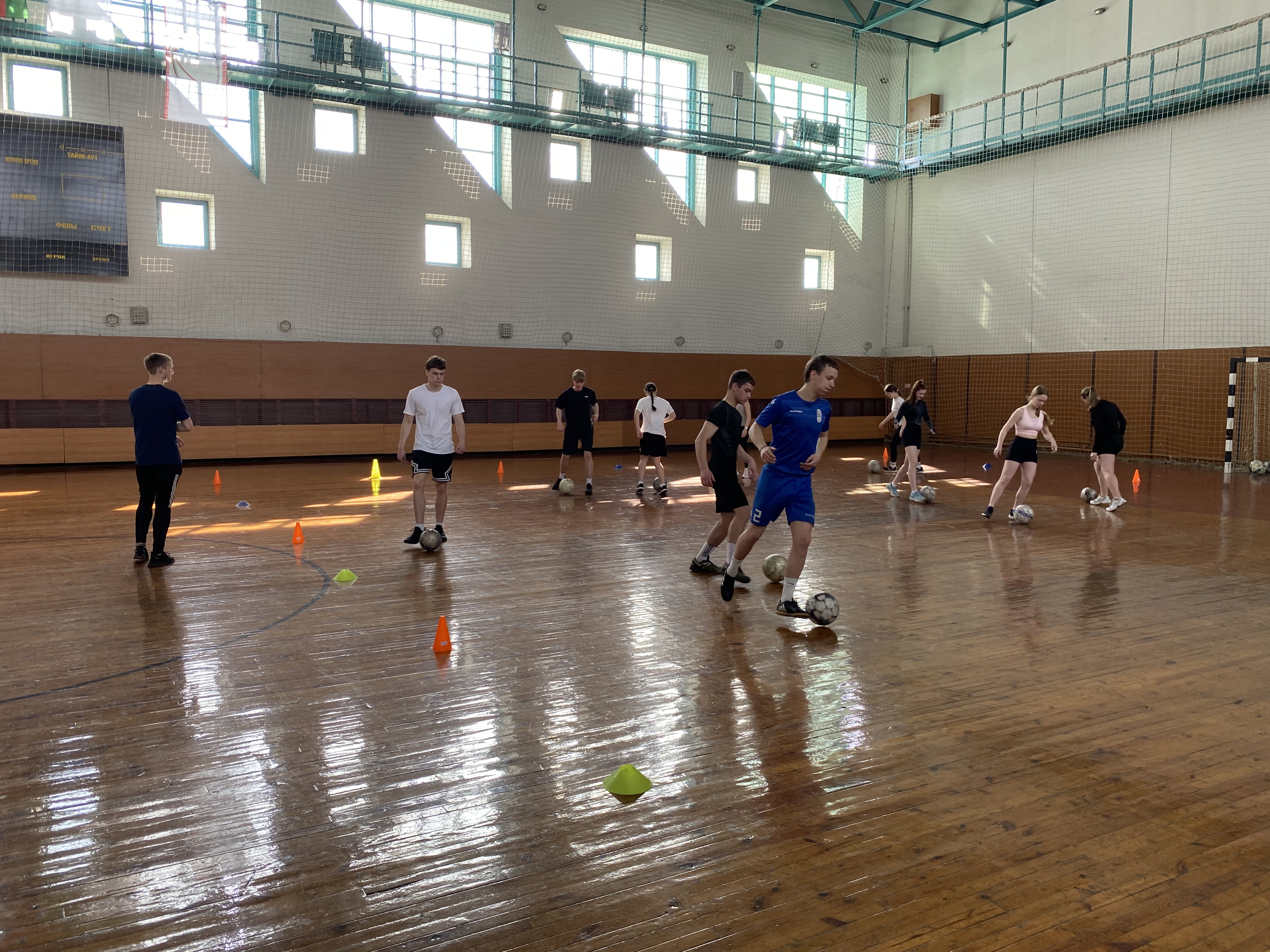 29 апреля в рамках II Научно-практического форума «Время спортивных игр» на кафедре футбола и хоккея прошел практический интенсив «Урок футбола в школе». Преподаватели кафедры Харитонов Евгений Сергеевич, Галуза Илья Константинович, Панасевич Максим Сергеевич провели практическое занятие с группой 011 в рамках учебной дисциплины СиПИиМП (футбол). Тема практического интенсива полностью соответствовала учебной программе дисциплины «Техника остановок мяча подошвой. Техника ведения мяча различными способами. Методика обучения и совершенствования остановки мяча подошвой и ведения мяча».