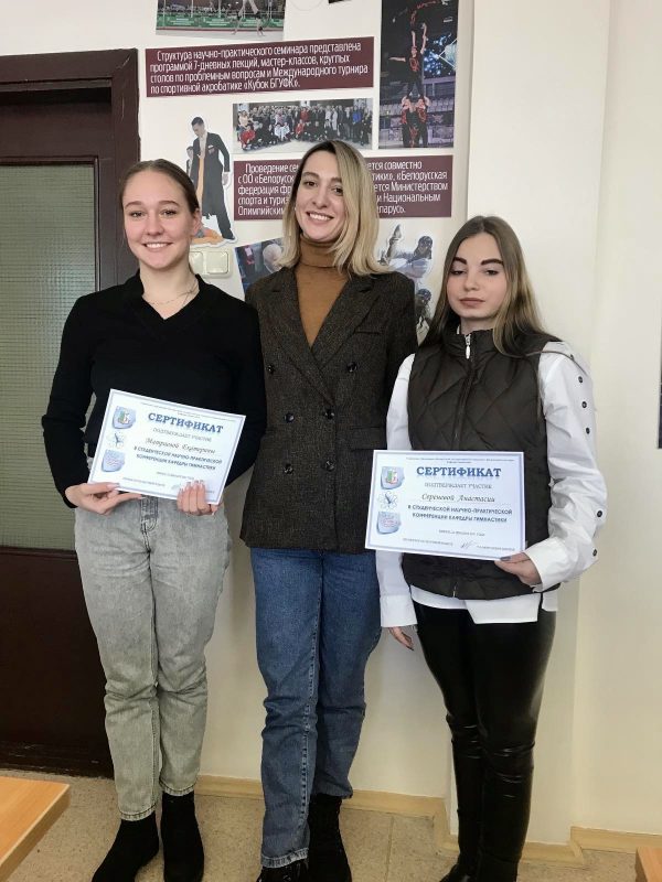 2. Матраева Екатерина Сергеевна (221 группа) — «Анализ соревновательной деятельности национальной команды Республики Беларусь по гимнастике художественной за 2020-2021 гг.».