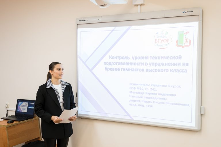 - Сухоренко Дарья Сергеевна, 241 группа «Сравнительный анализ уровня подготовленности батутистов высокого класса по итогам выступлений на международных и республиканских соревнованиях в макроцикле 2022-2023 гг.» Научный руководитель – кандидат педагогических наук, доцент Н.Ю.Мацюсь.