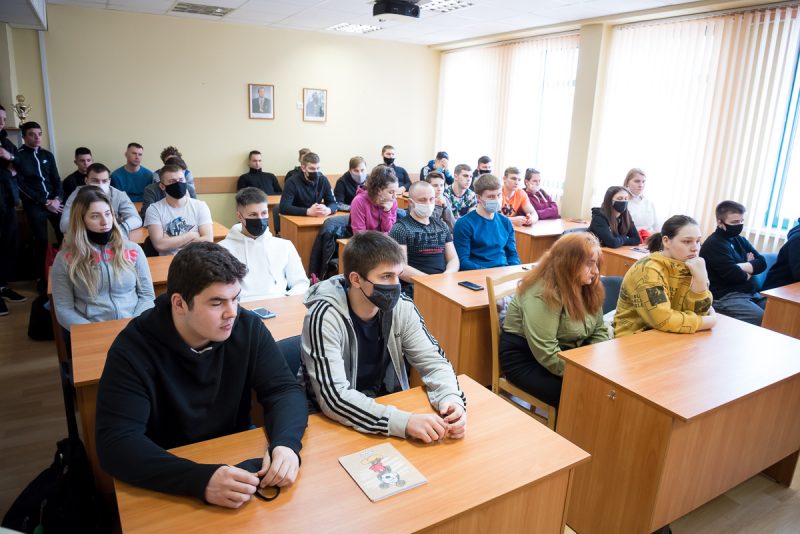 На кафедре спортивной борьбы 26 марта 2021 года состоялась встреча студентов 2 и 3 курсов с начальником управления кадровой политики Министерства спорта и туризма Республики Беларусь Вячеславом Михайловичем Шипаревым.