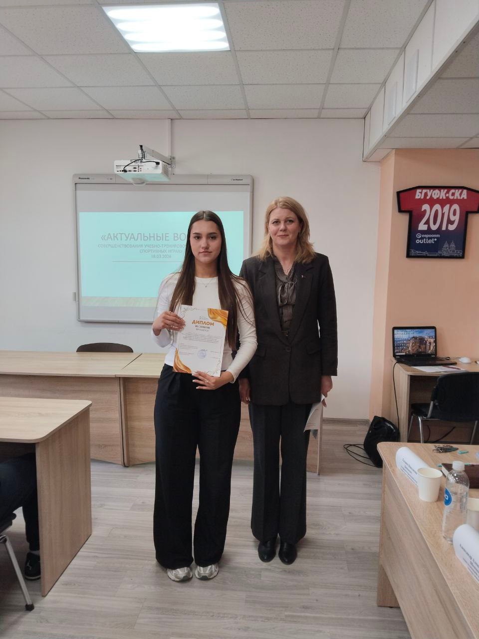 5. Иванова Елизавета, студентка 1407 группы, доклад по теме «Применение средств профилактической гимнастики в тренировочном процессе волейболистов». Научный руководитель —  Судникевич О.И.