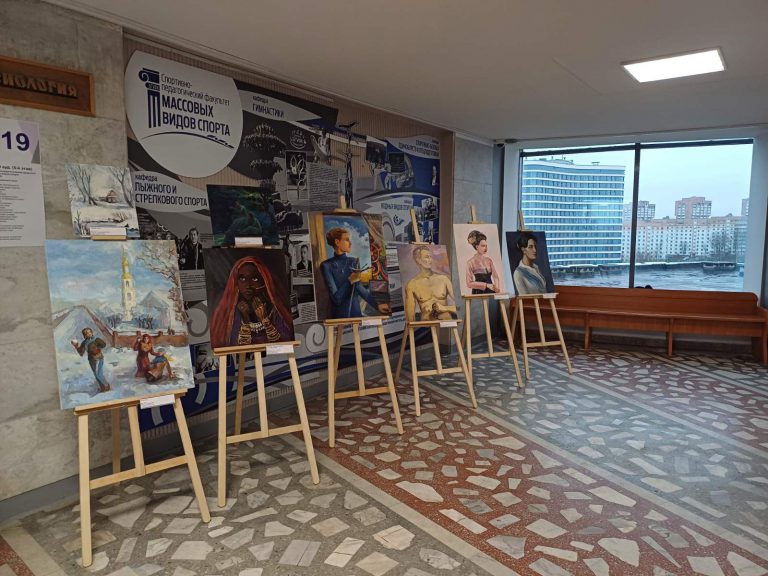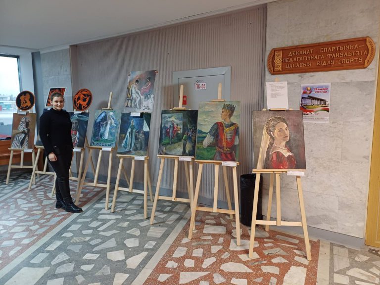 На пятом этаже главного корпуса Белорусского государственного университета физической культуры проходит выставка художественных работ студентки спортивно-педагогического факультета массовых видов спорта 2209 группы Дарьи Глазуновой. На выставке «От мифов и легенд — в настоящее…» представлены работы художницы разных лет.