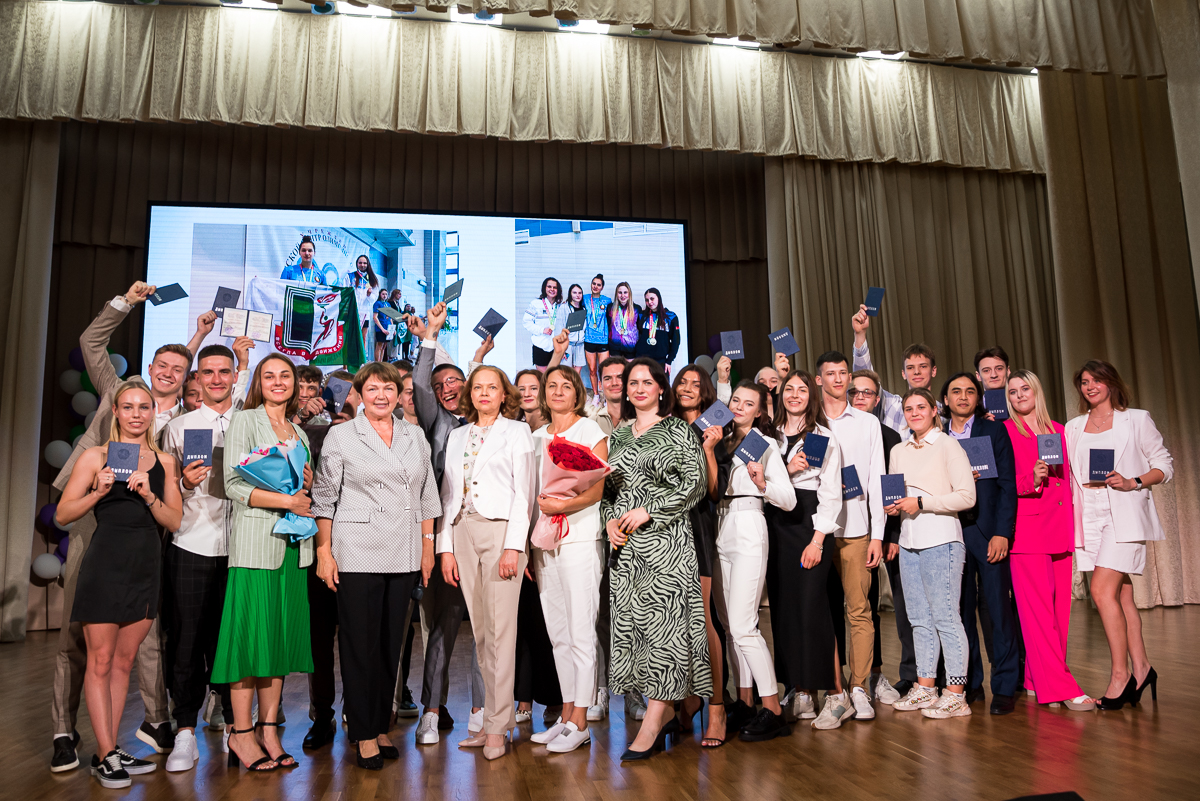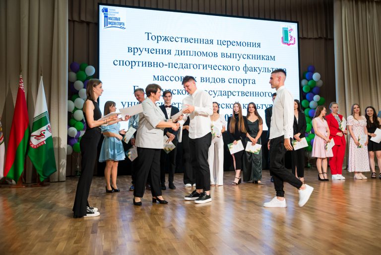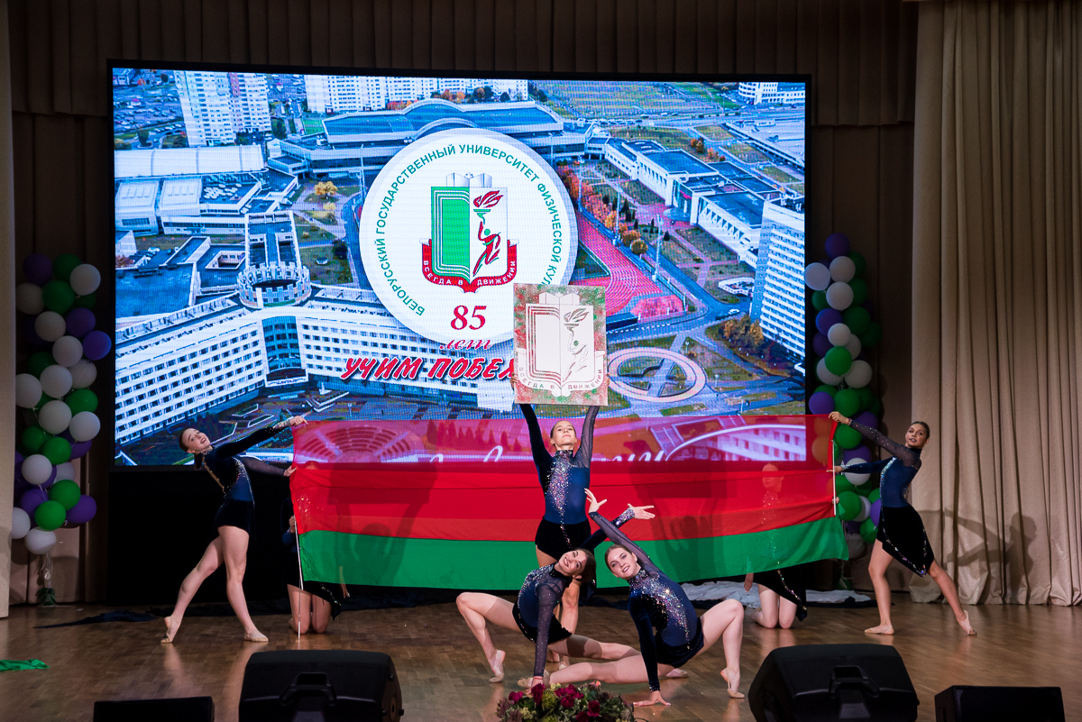 Декан факультета Ирина Иосифовна Гуслистова торжественно зачитала приказ о награждении грамотами более 50 выпускников за высокие достижения в спорте и активное участие в научной, спортивной и общественной жизни университета. Театр гимнастики, бронзовый призер Всероссийского фестиваля вузов физической культуры, в подарок выпускникам представил хореографическую композицию «85 лет – учим побеждать», ведь более 150 раз за историю существования БГУФК его студенты и выпускники поднимались на олимпийский пьедестал.