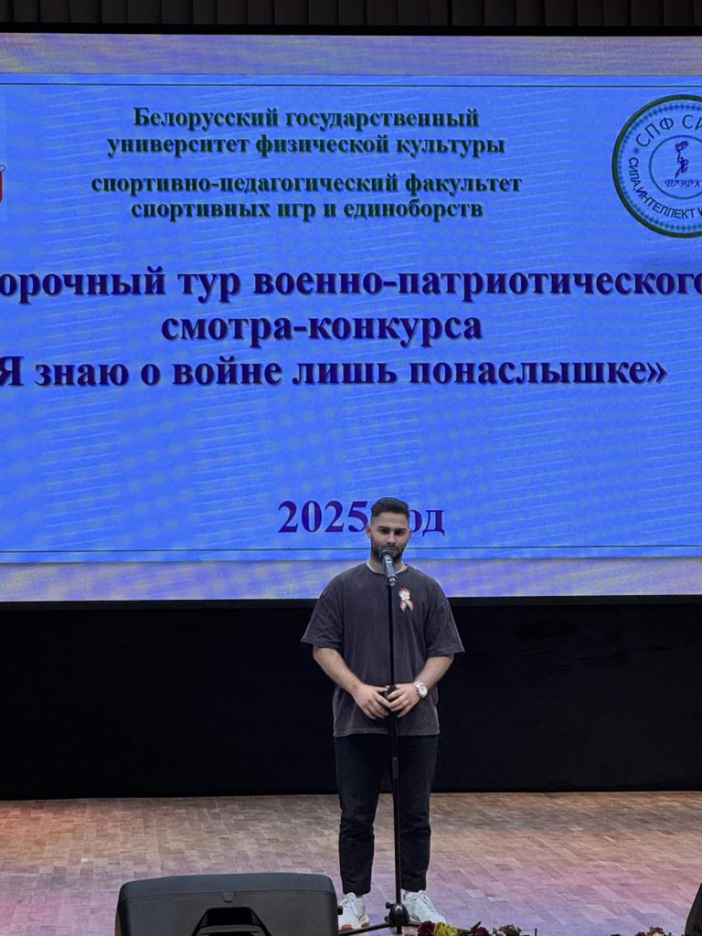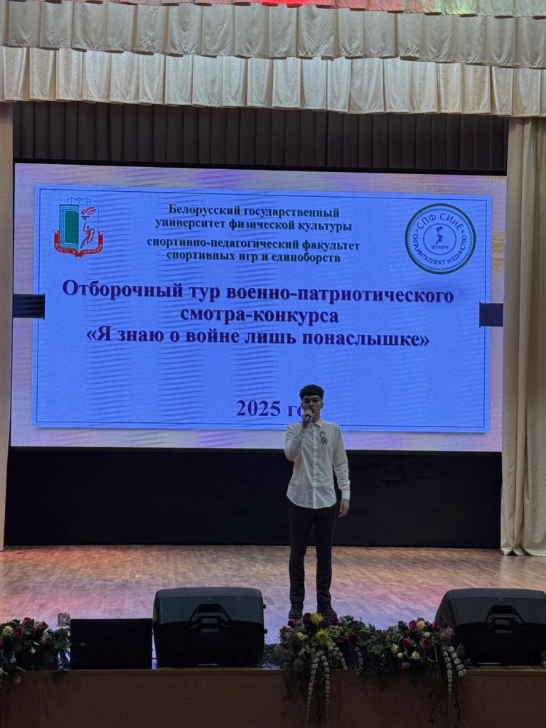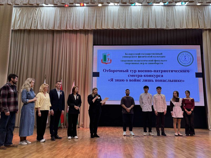 На спортивно-педагогическом факультете спортивных игр и единоборств состоялся отборочный тур военно-патриотического конкурса «Я знаю о войне лишь понаслышке», в котором принимали участие студенты кафедры велосипедного, конькобежного и конного спорта; спортивных игр; футбола и хоккея.