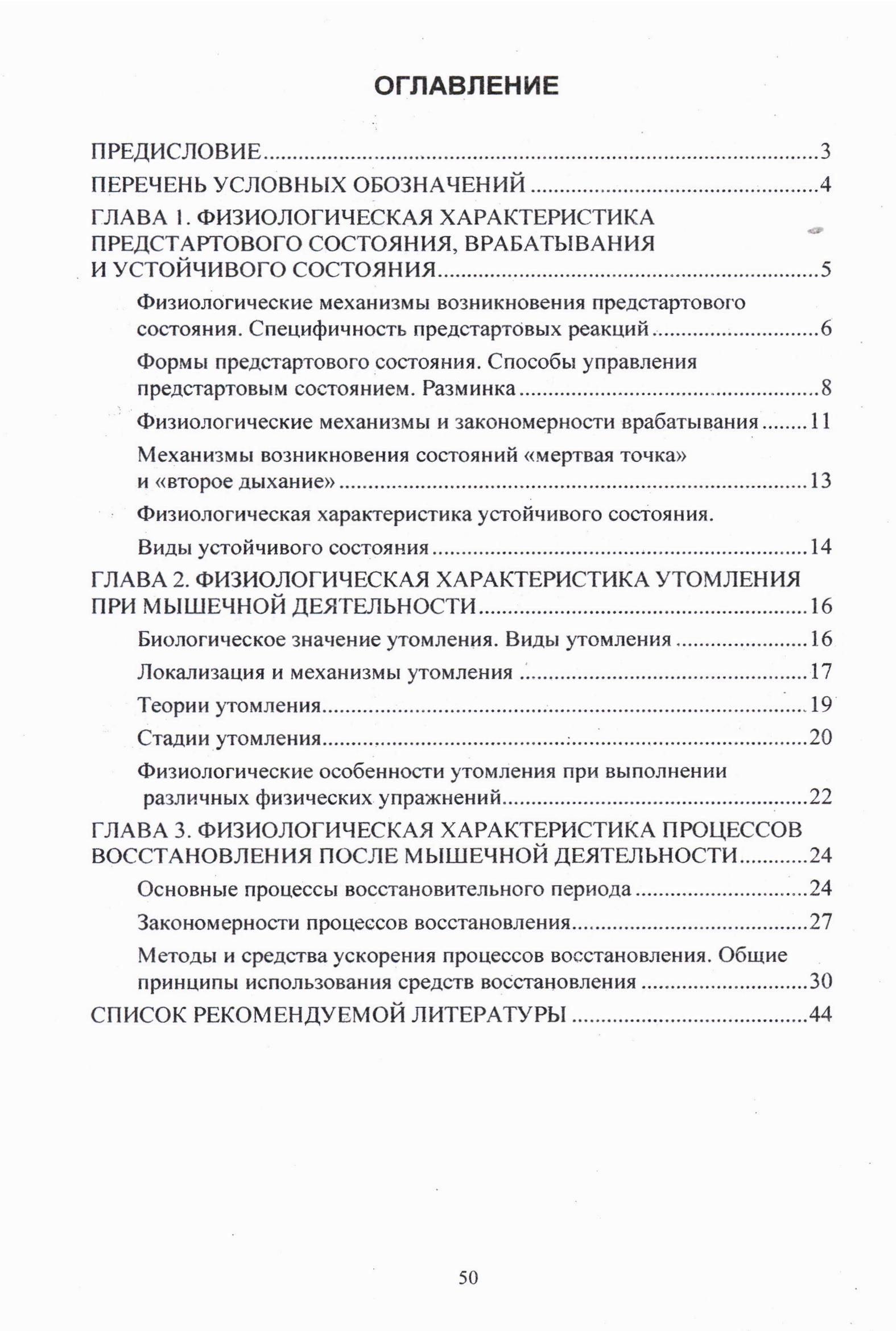 В пособии раскрыты механизмы возникновения и закономерности протекания предстартового состояния, врабатывания, устойчивого состояния, утомления и восстановления в процессе выполнения физических нагрузок и после их завершения.