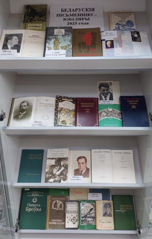 Приглашаем пользователей посетить тематическую выставку литературы «Беларускія пісьменнікі-юбіляры 2025 года», организованную на абонементе (к. 107).