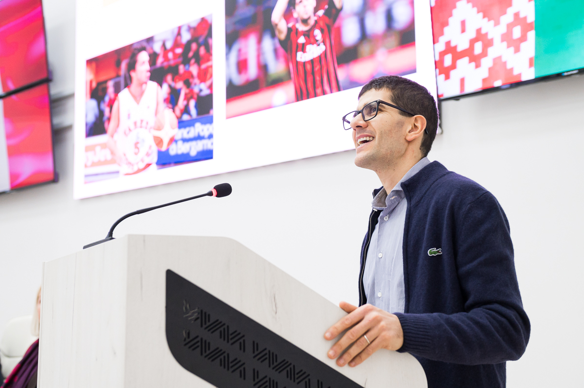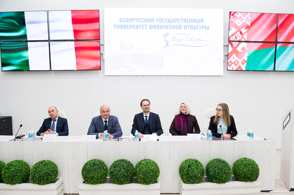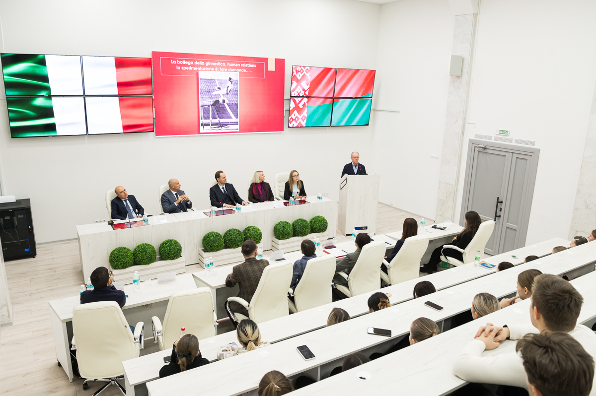 4 декабря в Белорусском государственном университете физической культуры перед студенческой аудиторией прошла открытая лекция итальянских специалистов по гимнастике Массимо Контальдо и Джорджо Плати. На встрече гости обменялись опытом с белорусскими коллегами и поделились интересными фактами из мира гимнастики.