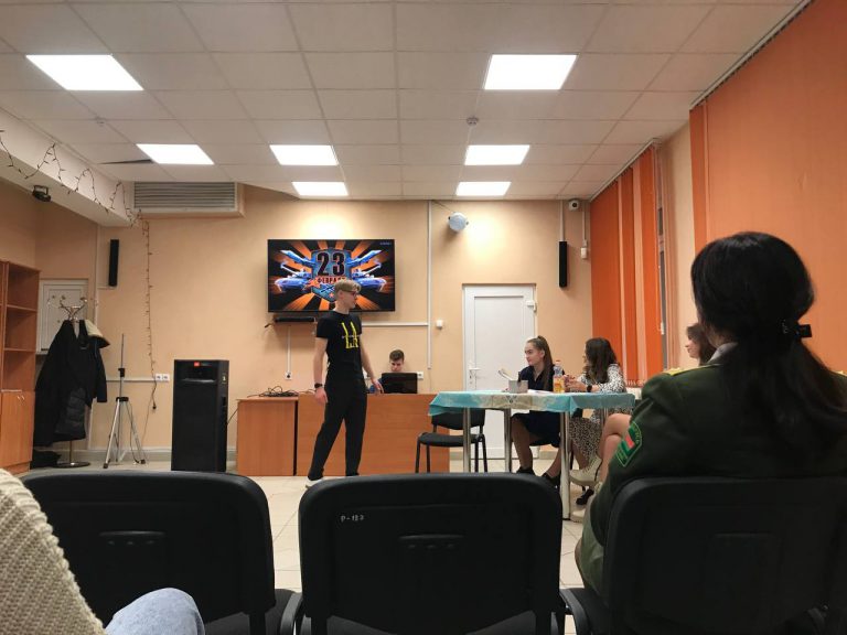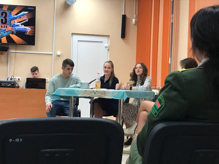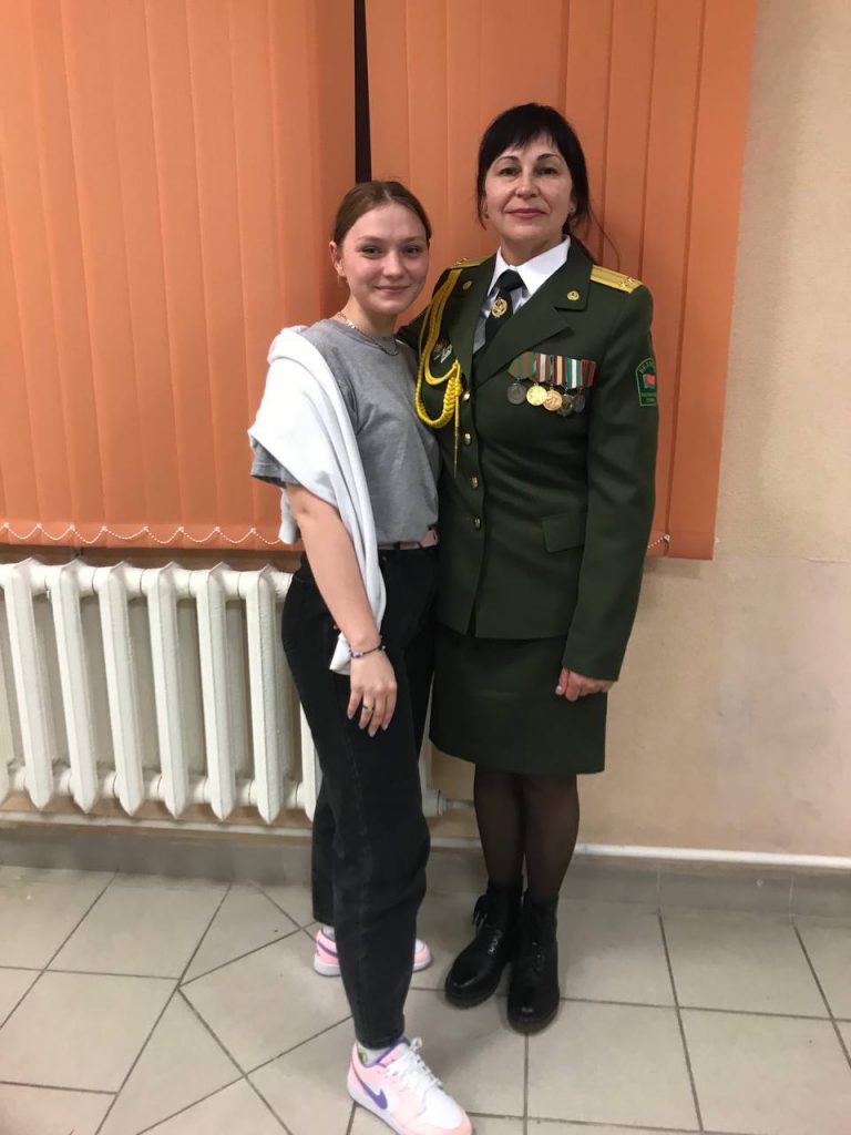 Настоящий фурор на студентов произвела воспитатель общежития, подполковник органов пограничной службы в запасе Татьяна Анатольевна Ященя, которая предстала на мероприятии в военной форме, чем произвела на зрителей неотразимый эффект.