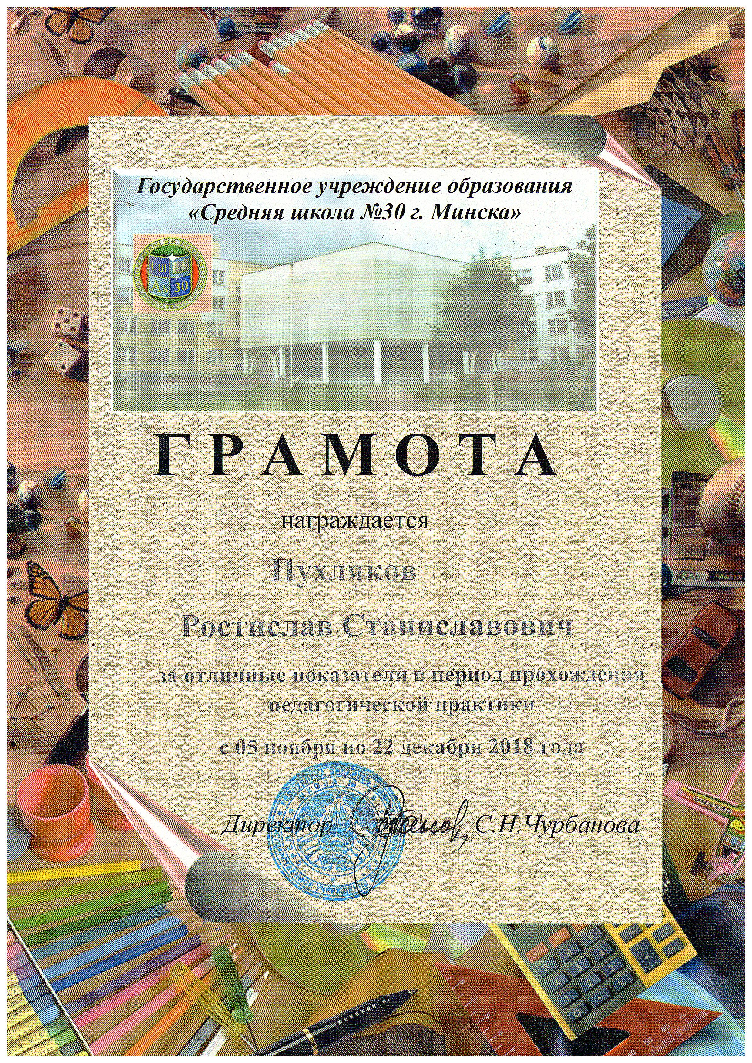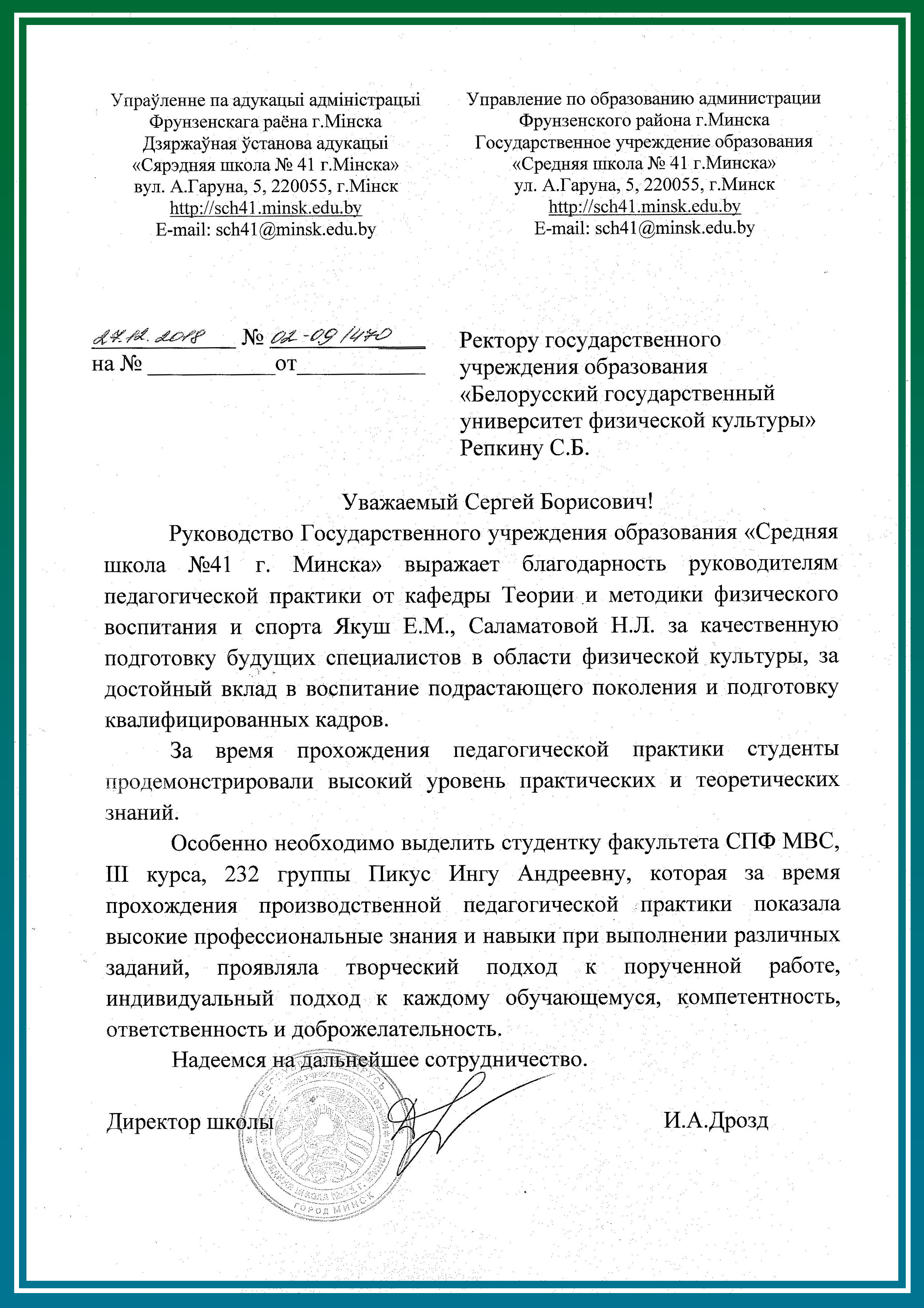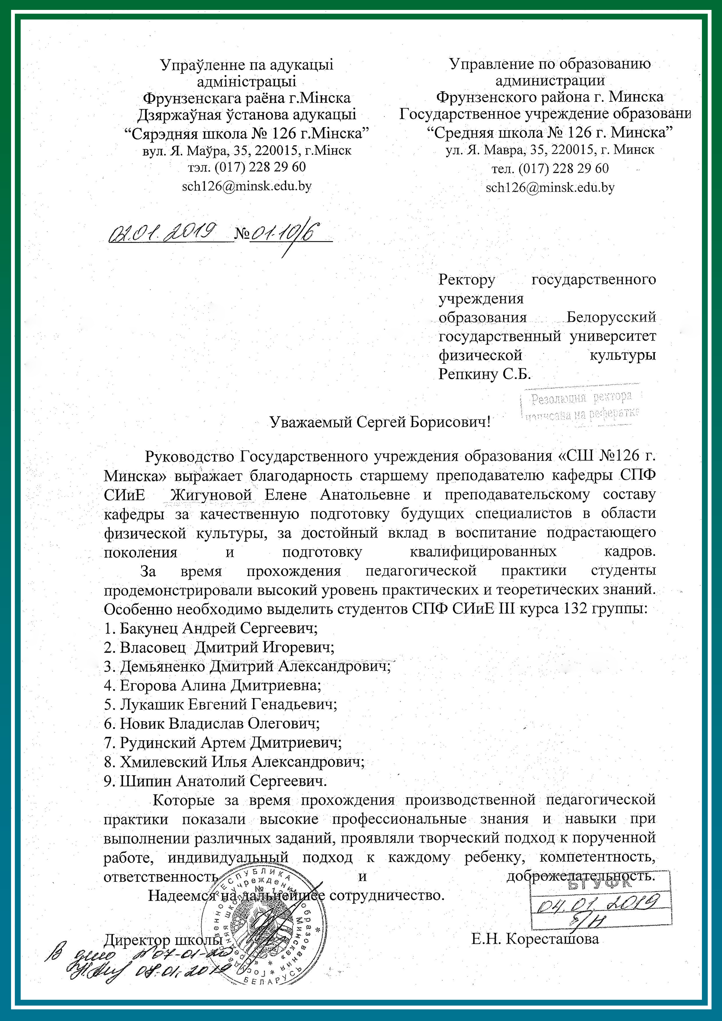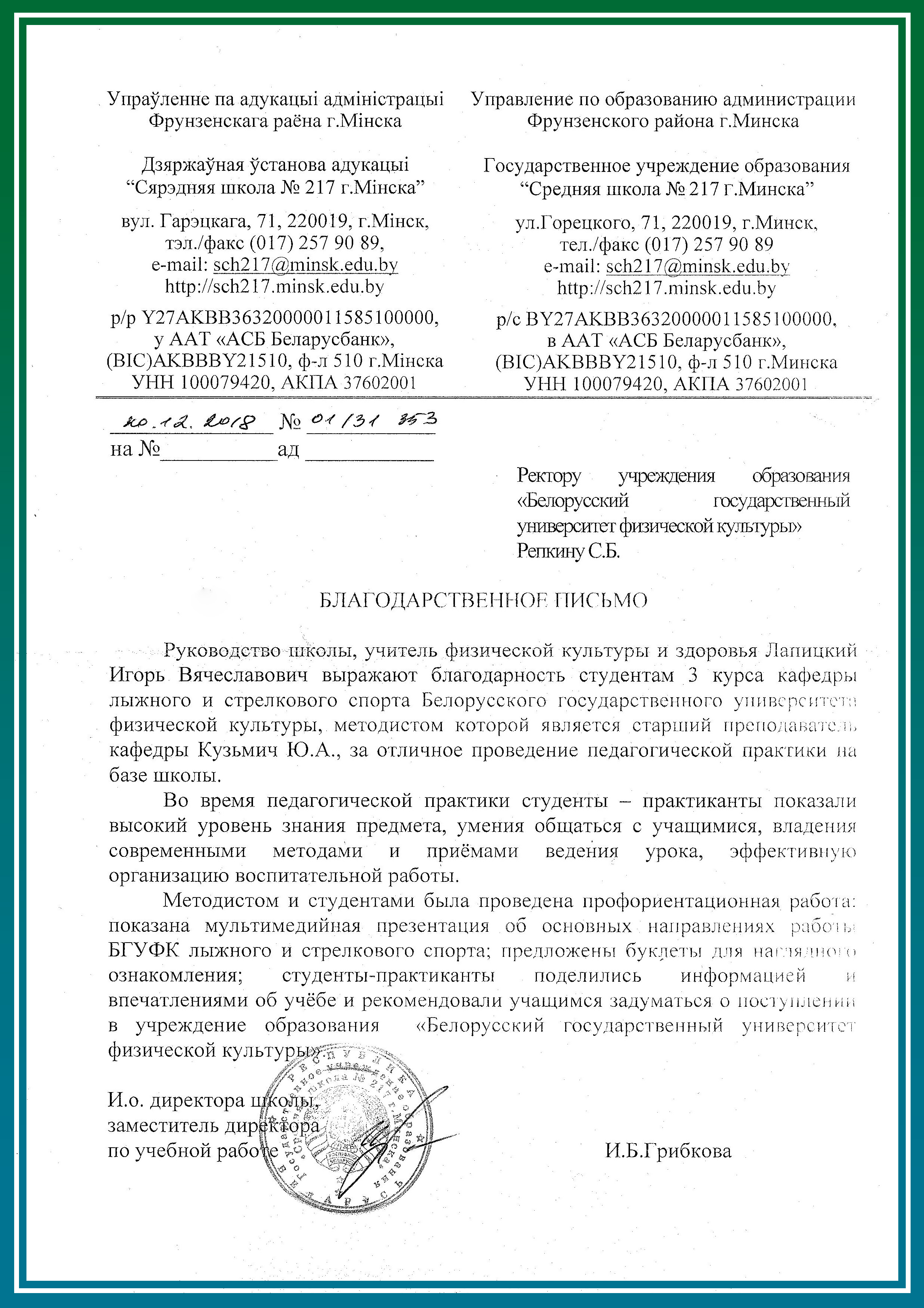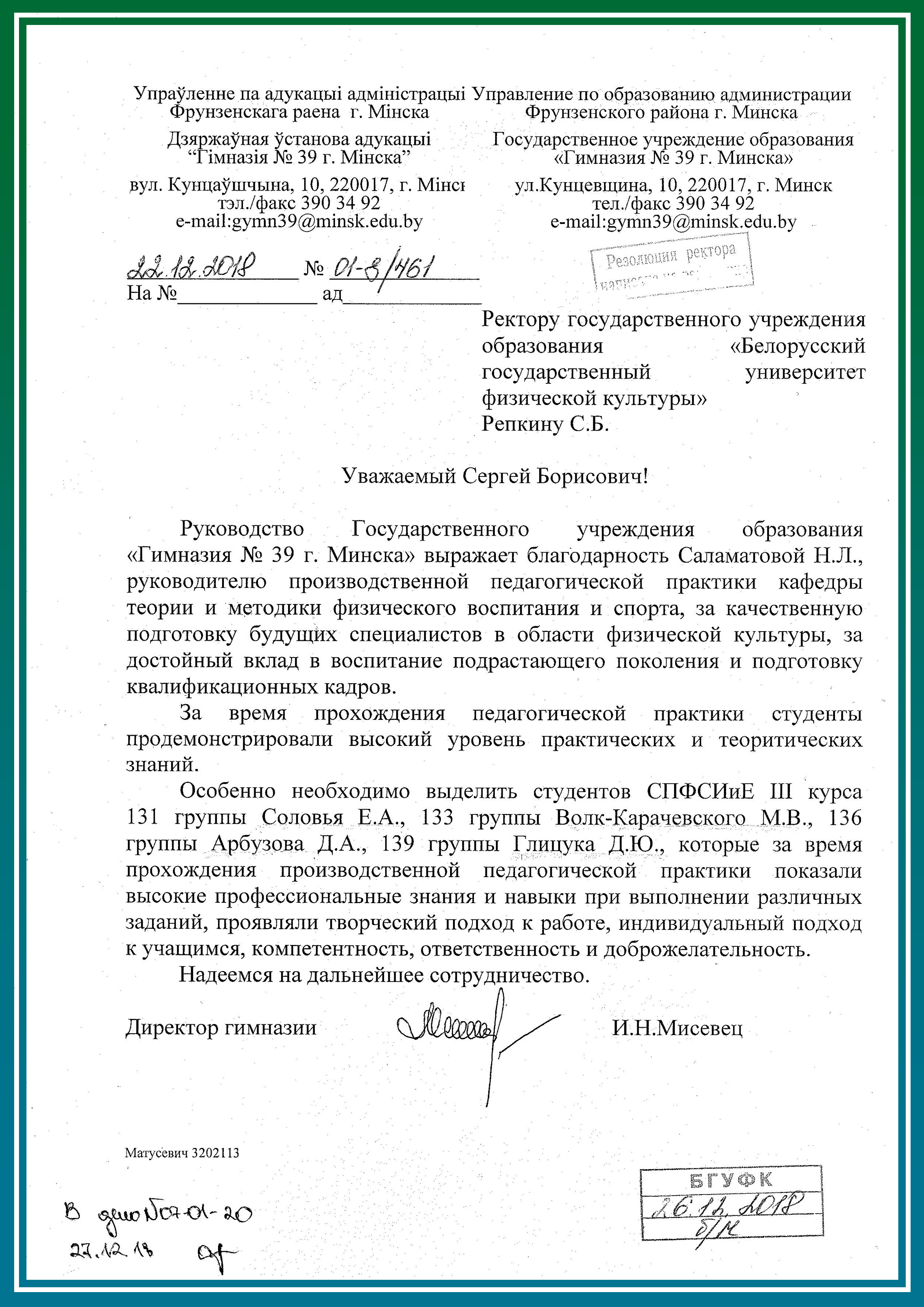 Производственная педагогическая практика студентов 3 курса дневной формы получения образования проходила с 05.11.2018 по 22.12.2018 на 73 базах практики (средних школах / гимназиях).