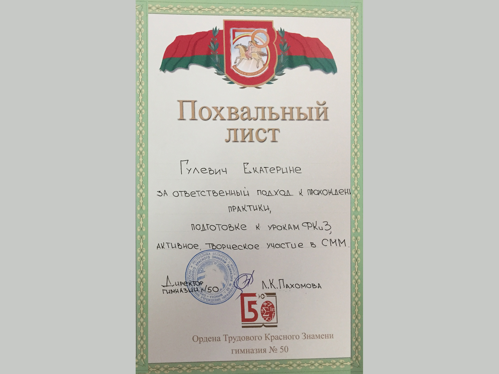 Руководитель практики от факультета заведующий кафедрой ТиМФВиС, кандидат педагогических наук, доцент Ступень Марина Петровна.
