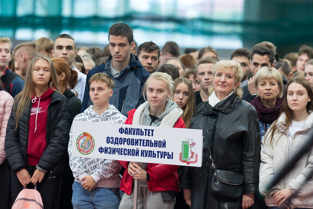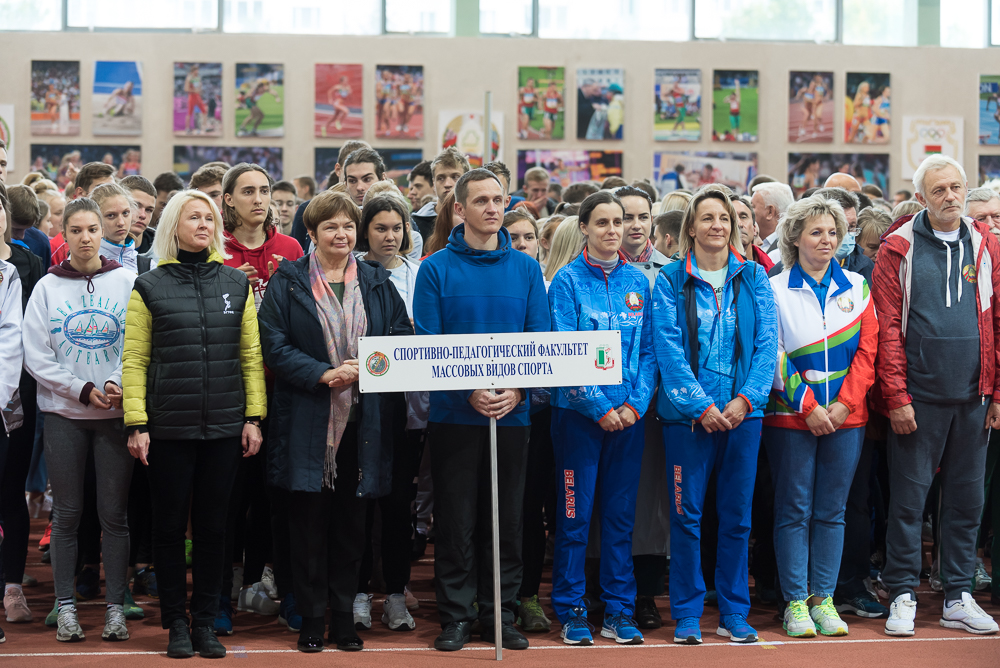 18 сентября легкоатлетический манеж спортивного корпуса БГУФК принял ежегодное первенство университета по легкоатлетическому кроссу памяти Заслуженного тренера БССР Михаила Миновича Сидоренко. Неустойчивая осенняя погода внесла свои коррективы, с пронизанного ветром стадиона церемонию открытия осеннего кросса перенесли в спортивное ядро манежа, которое заполнили многочисленные участники этого яркого спортивного мероприятия.