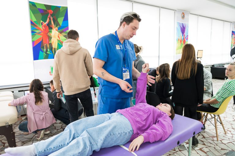 Открыла конференцию работа интерактивной площадки «Калейдоскоп здоровья», в ходе которой более 200 студентов, магистрантов и преподавателей прошли функциональное и педагогическое тестирование по 6 методикам, включающим в себя анализ 40 психофизиологических и функциональных показателей организма.