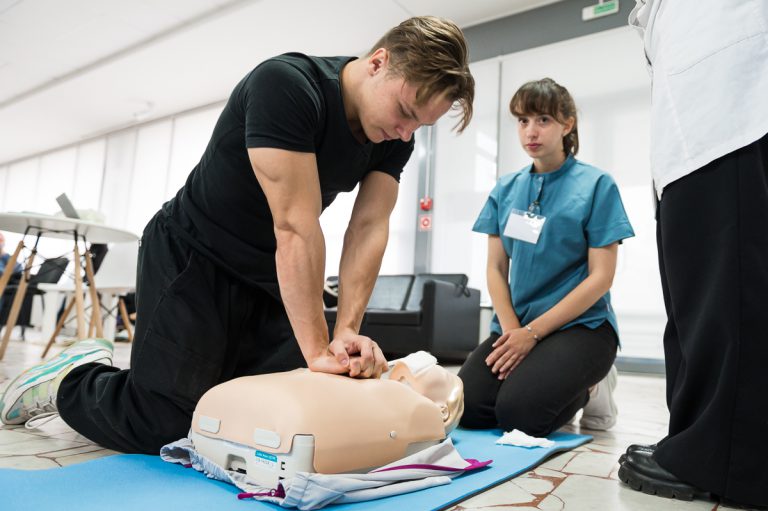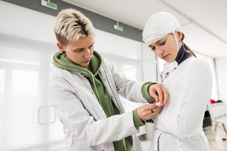 Студенты и сотрудники университета смогли попробовать свои силы в оказании первой помощи пострадавшим. Эту возможность участникам конференции представил мастер-класс от сотрудников Центральной районной организации г. Минска Белорусского Красного Креста.