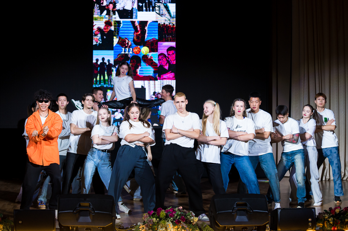 Приятным сюрпризом для первокурсников был флешмоб преподавателей, который подарил всем зрителям незабываемые эмоции.
