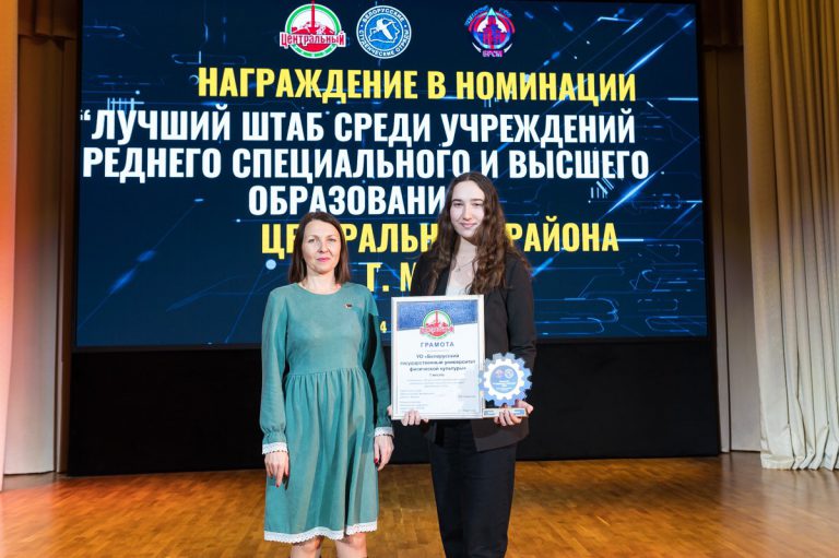 Белорусский государственный университет физической культуры занял первое место в номинации «Лучший штаб трудовых дел среди учреждений среднего специального и высшего образования в 2024 году».