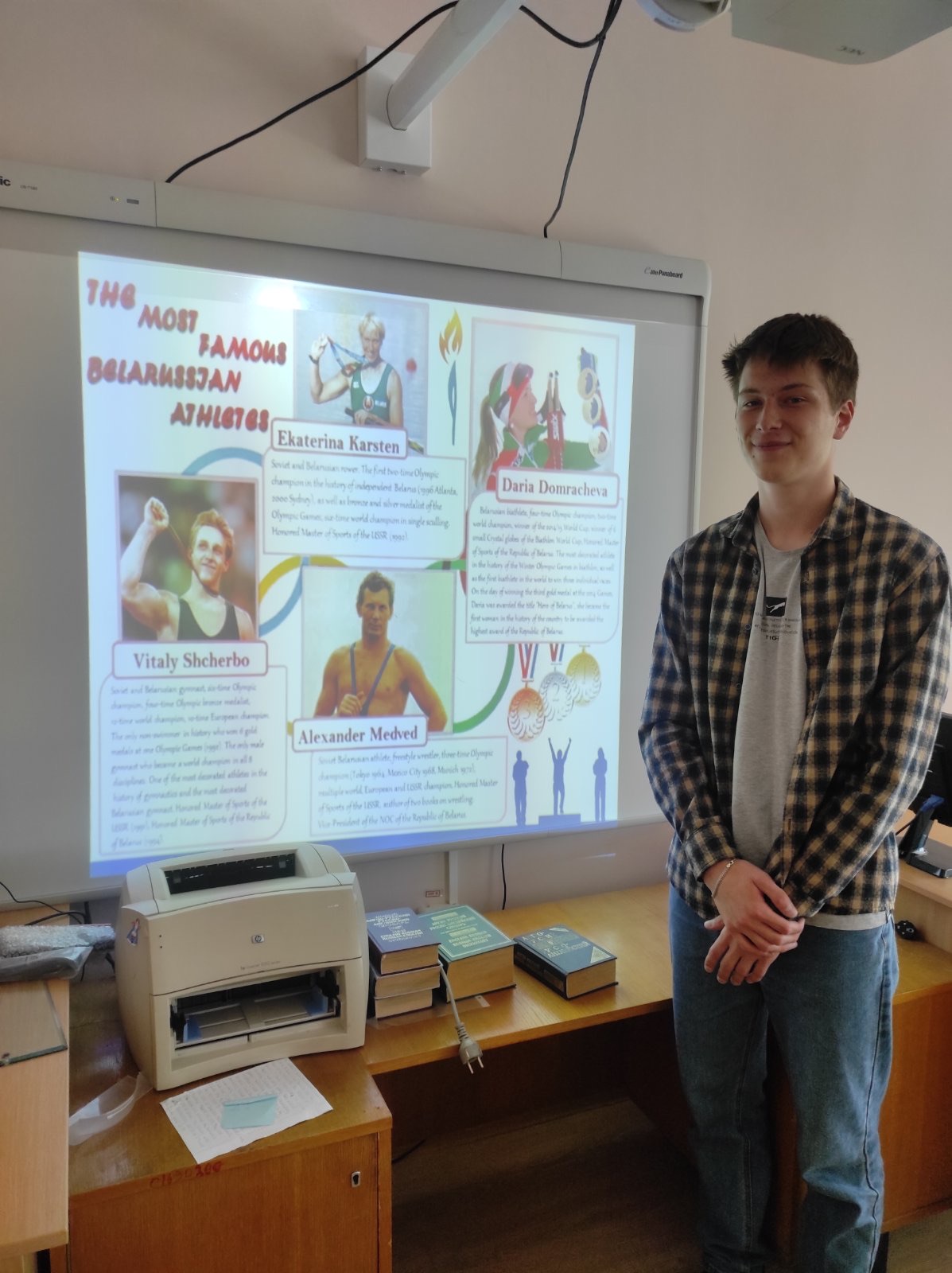 II места были удостоены студенты 114 группы Ласунова Анна, Шпаковский Вячеслав (Tour de France)и 010 группы Архиреев Ярослав (The Most Famous Belarusian Athletes).