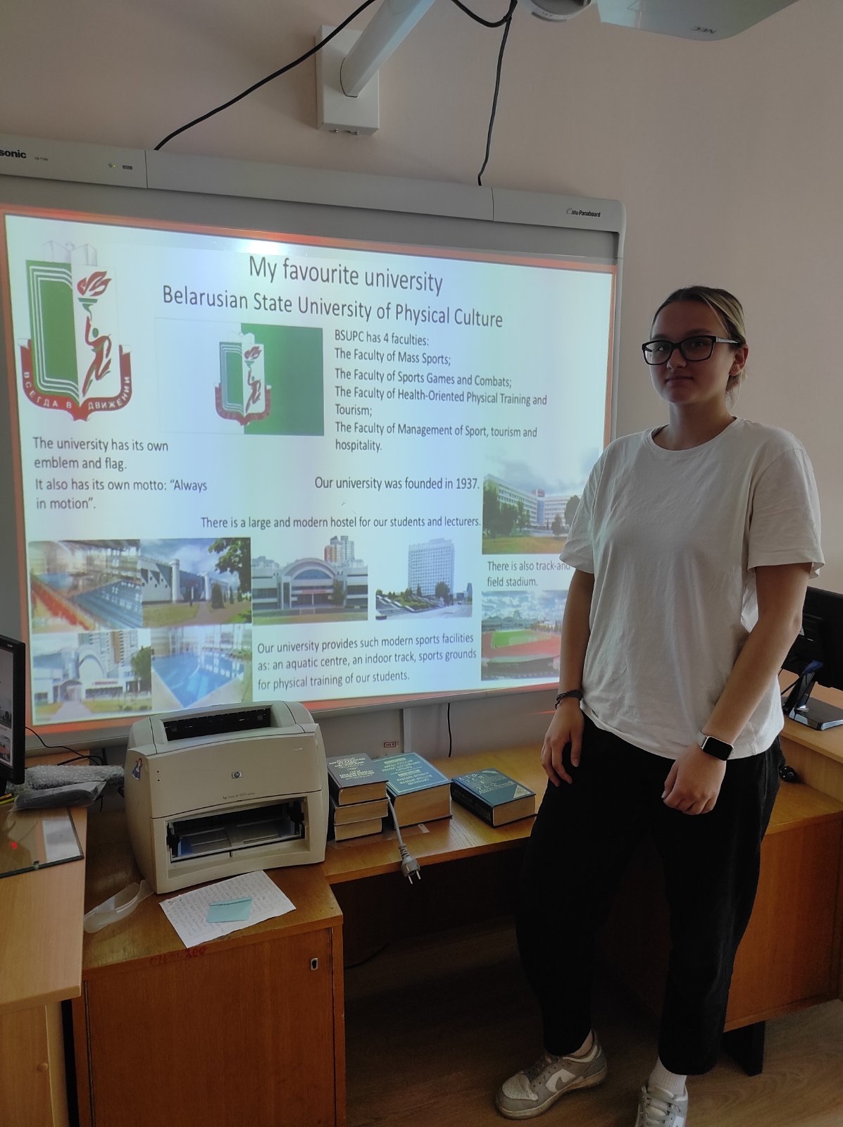 Цели конкурса: творческое развитие студентов БГУФК, пропаганда спорта и здорового образа жизни; повышение мотивации студентов к изучению иностранных языков; развитие навыков устной и письменной речи. Обучающиеся представили 12 графических проектов «плакатов» и «стенгазет» на английском и немецком языках по темам «Университет», «Мой вид спорта», «Олимпийские игры».