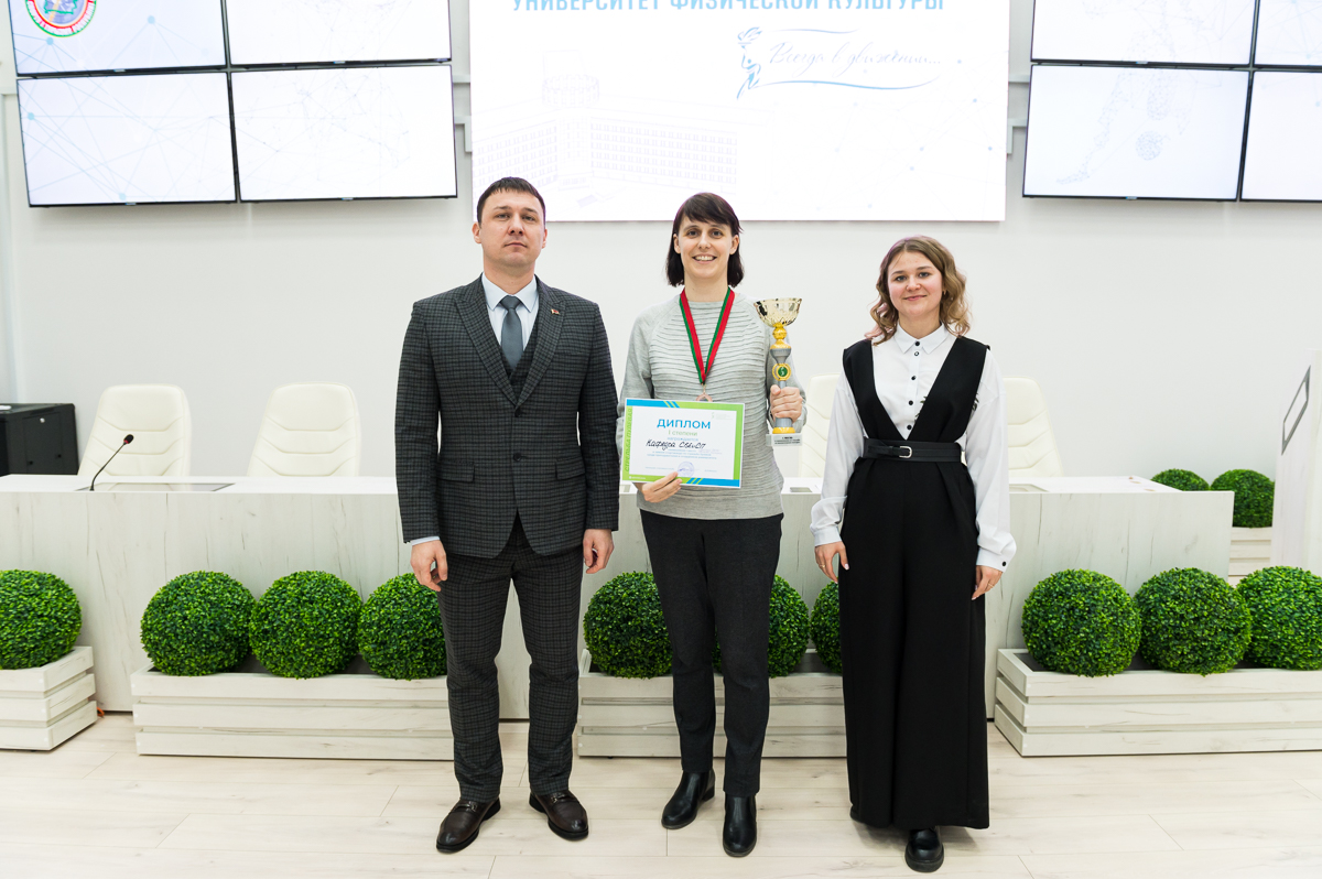 Золотой значок «Фiзкультурнік Беларусі» присвоен: Клинову Владимиру Владимировичу – первому проректору университета, Васильевой Анне Кирилловне – преподавателю кафедры технологий фитнеса, Чекмаревой Алесе Викторовне – заместитель начальника спортивного клуба, Тарасевич Наталье Руслановне – старшему преподавателю кафедры анатомии, Здончик Елене Владимировне – старшему преподавателю кафедры гимнастики, Дворяниновой Екатерине Валерьевне – доценту кафедры лечебной физической культуры и физической культуры дошкольников, Гататуллину Алексею Геньятовичу – профессору кафедры философии и истории, Мамаевой Светлане Геннадьевне – ведущему специалисту кафедры белорусского и русского языков, Граменицкой Инне Юрьевне – доценту кафедры спортивно-боевых единоборств и спецподготовки, Матюку Михаилу Александровичу – преподавателю кафедры легкой атлетики.