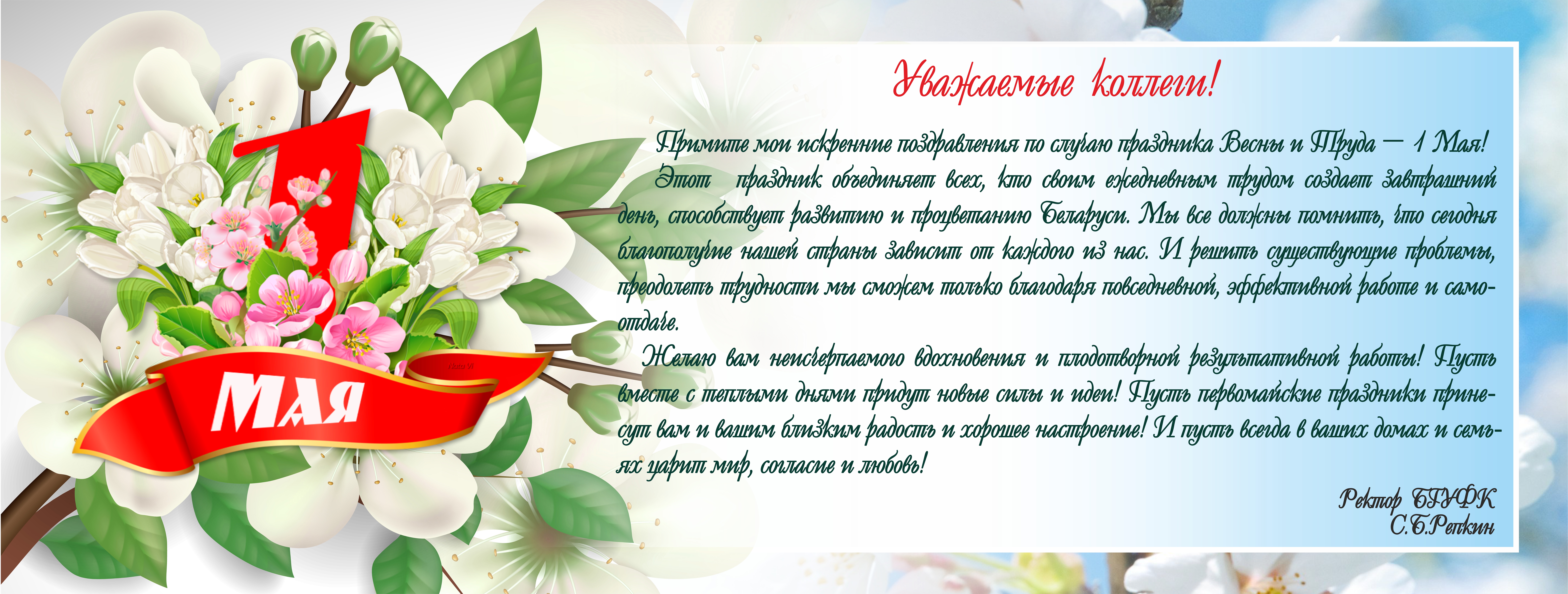 Поздравление ректора университета с праздником Весны и Труда!