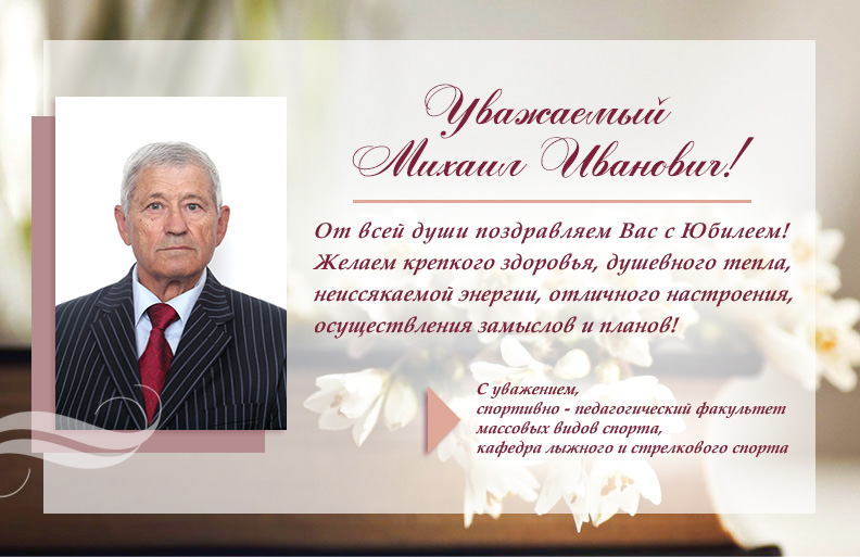 30 апреля 2020 года отмечает свое 80-летие профессор кафедры лыжного и стрелкового спорта, кандидат педагогических наук, профессор, Заслуженный тренер Республики Беларусь, Технический делегат IBU по биатлону Михаил Иванович Корбит.