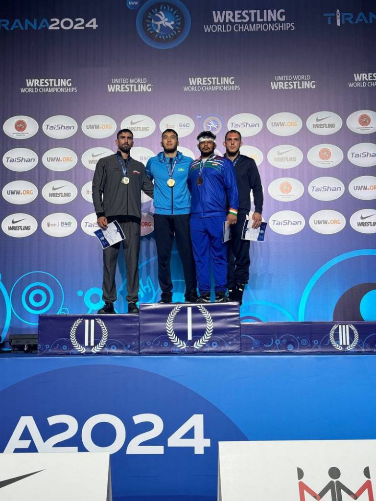 Студенты и выпускники кафедры спортивной борьбы, принимавшие участие в Чемпионате мира по вольной борьбе U23 в г. Тирана (Албания):