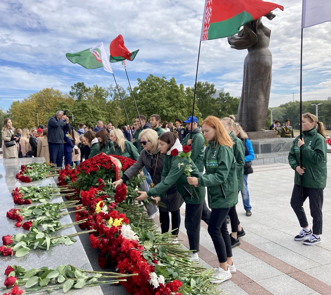 Празднование Дня города по традиции открылось церемонией возложения цветов к стеле «Минск — город-герой».