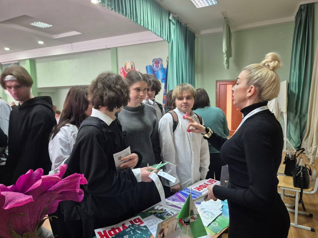 У учащихся была возможность в свободном режиме ознакомиться с презентацией университета и задать все интересующие вопросы, касающиеся поступления в БГУФК.