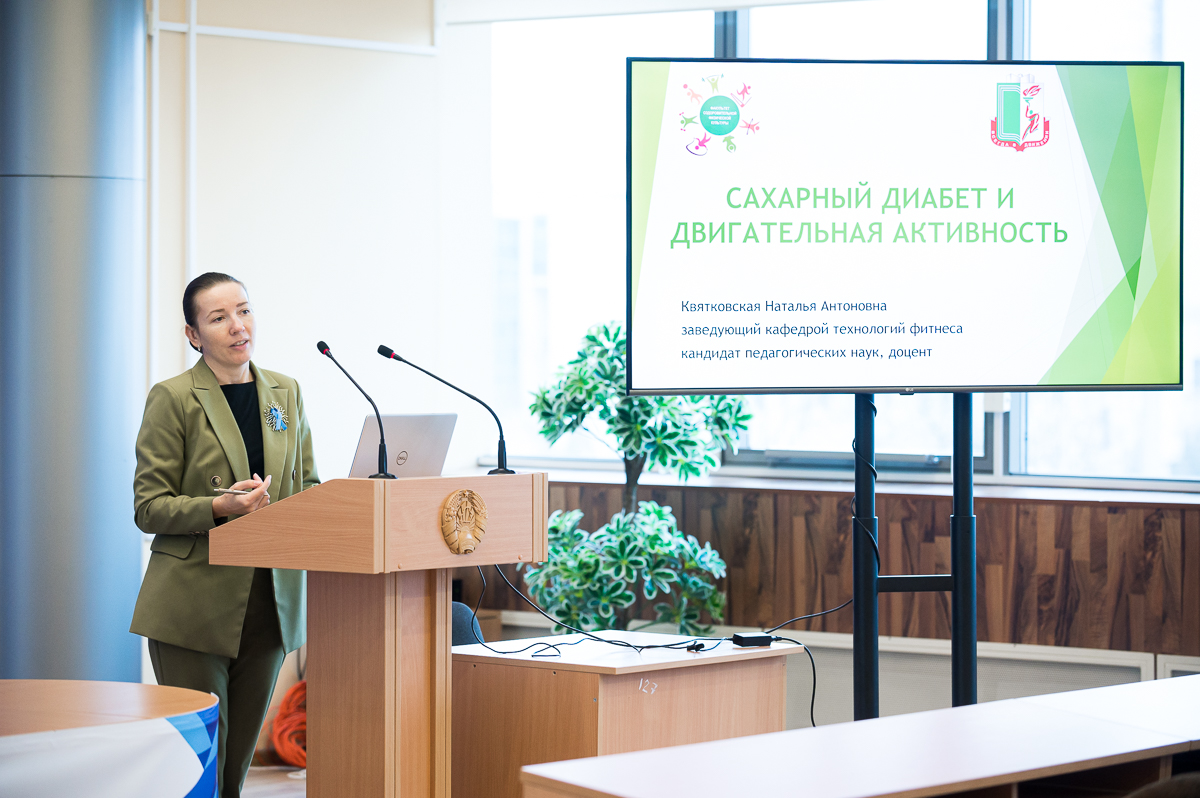 Заведующий кафедрой Наталья Антоновна Квятковская выступила с докладом «Сахарный диабет и двигательная активность» перед врачебным сообществом эндокринологов.