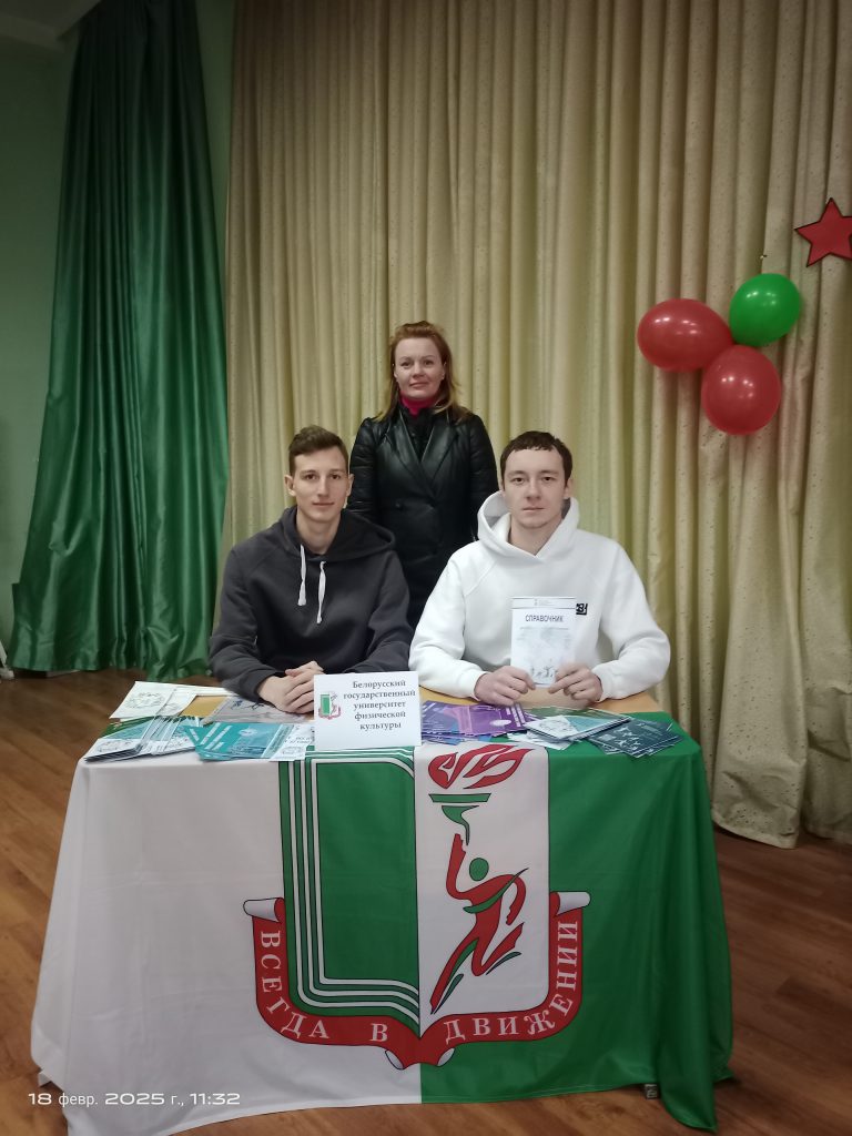 18 февраля представители подготовительного отделения совместно со студентами группы № 4304 факультета менеджмента спорта, туризма и гостеприимства Института менеджмента спорта и туризма приняли участие в очередном профориентационном мероприятии «Будущее выбираю сегодня», которое прошло в учреждении образования «Средняя школа № 153 А.К.Талая г. Минска» в рамках школьной Недели карьеры.