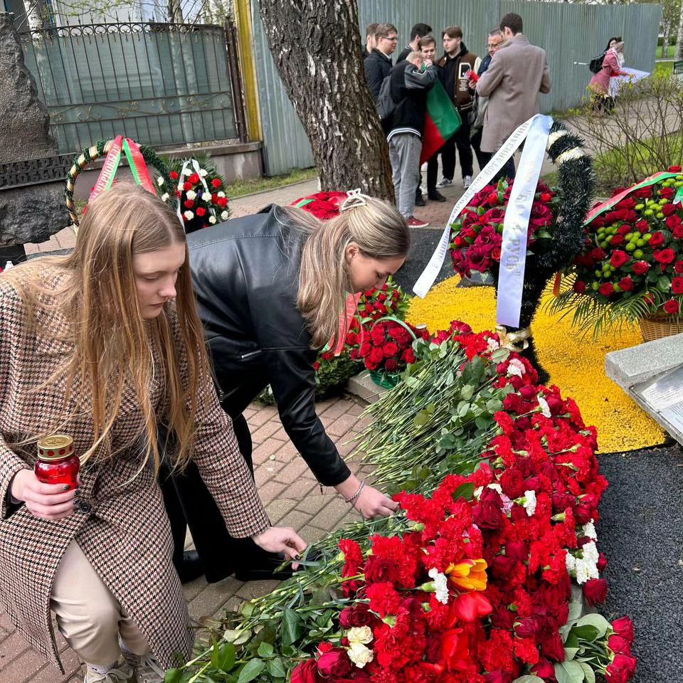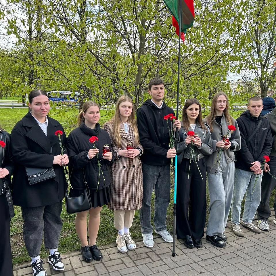 Возложить цветы к месту всенародной памяти пришли официальные лица и сотни белорусов. Среди участников мероприятия были и студенты университета во главе с председателем профкома студентов университета Павлом Корсаком, которые почтили память жертв Чернобыльской АЭС и возложили цветы к памятным знакам.