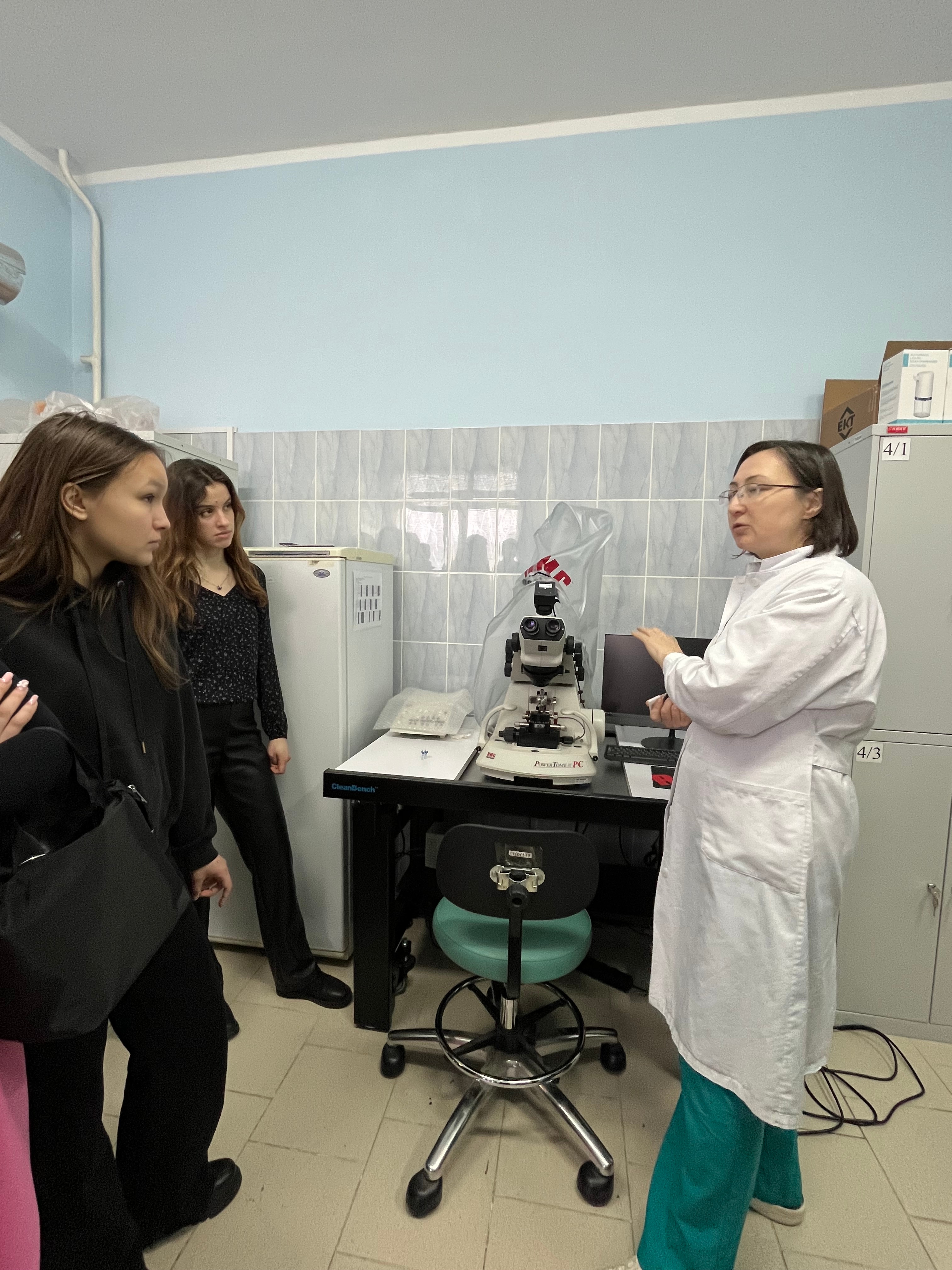 Заведующий Центром морфологических исследований, кандидат медицинских наук, доцент Светлана Николаевна Рябцева показала современные электронные и световые микроскопы и рассказала об особенностях проведения гистологических исследований и изучении закономерностей функционирования основных систем организма.