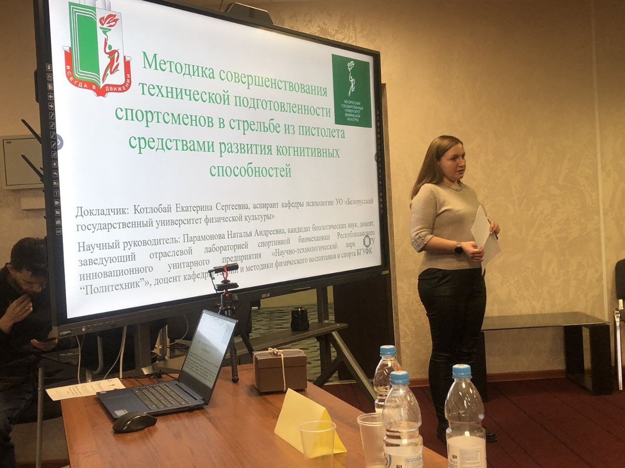 26 апреля с научным докладом «Методика совершенствования технической подготовленности спортсменов в стрельбе из пистолета средствами развития когнитивных способностей» выступила старший преподаватель кафедры водных видов спорта, аспирант кафедры психологии Котлобай Екатерина Сергеевна. Выступлением Екатерины Сергеевны были заинтересованы преподаватели кафедры теории и методики биатлона и стрельбы, проведен обмен опытом, а также в рамках исследований предложено совместное сотрудничество.