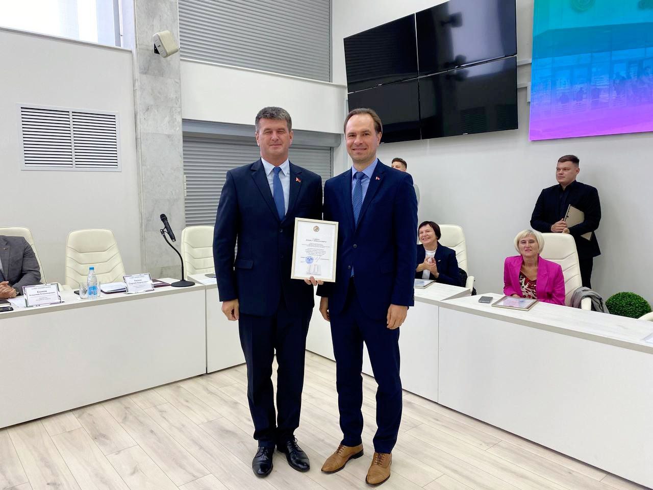 27 сентября, в рамках проведения Совета университета, за добросовестный труд, активное участие в подготовке и проведении на высоком уровне II Игр стран СНГ преподавателям и сотрудникам университета были вручены Благодарности Министерства спорта и туризма Республики Беларусь.