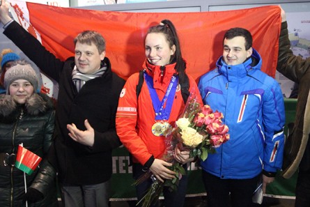 Поздравить ее, а также других спортсменов, тренеров, членов официальной делегации в аэропорт приехали заместитель министра образования Виктор Якжик, начальник управления спорта Министерства спорта и туризма Игорь Емельянов.